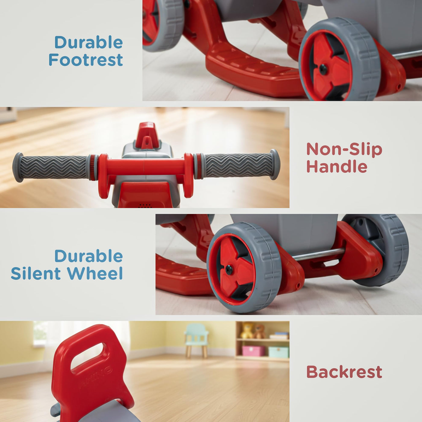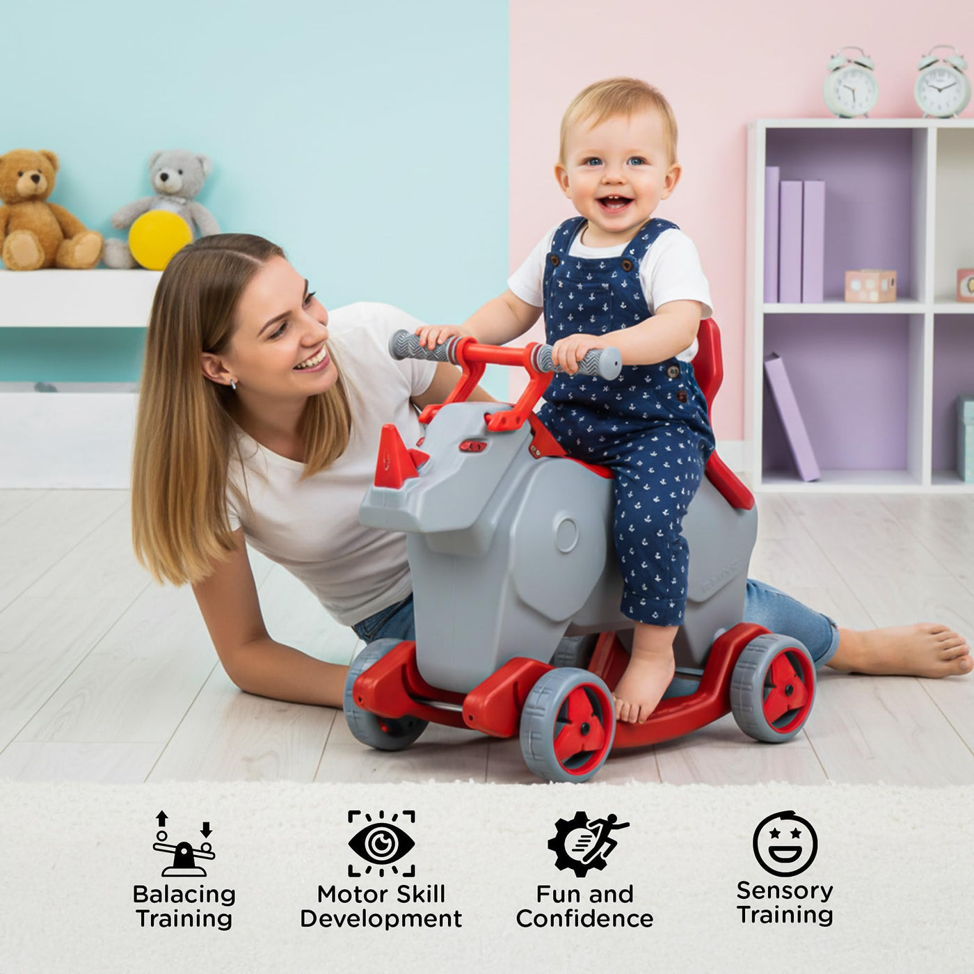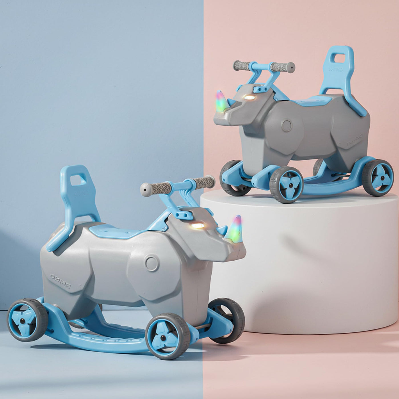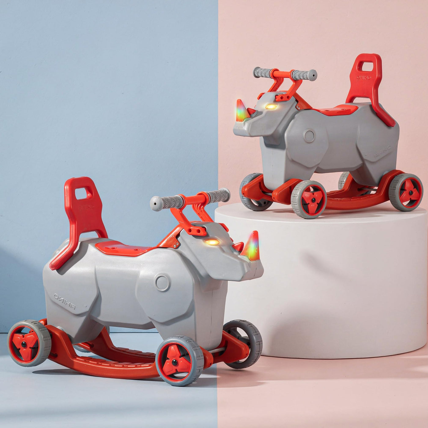 The versatile Baybee Rhino 2-in-1 Ride-On & Rocker is perfect for ride on cars for kids 1-5 years as it easily transitions between Ride-On and Rocking modes, offering double the fun and development opportunities for your child. This toy promotes balancing & motor skill development, making it ideal for baby car for 0 to 3 year baby, helping your little one enhance their motor skills and balance in a fun and safe way. Crafted with a sturdy, durable design, it includes non-slip handles, a robust footrest, and silent wheels, ensuring safety and comfort, making it a great choice for a kids car. The Baybee Rhino is perfect for boosting confidence and is ideal as a push car for kids 1-5 years. It features a unique Night Glow Fun function, with soft RGB lighting that adds a calming, nighttime play vibe, making it an excellent choice for a kids car for 2-5 years boy. For added excitement, the toy comes equipped with built-in music and sound effects, ensuring endless fun for your child, making it a fantastic option for ride on toys for 2+ year old. Designed with easy storage in mind, it is perfect for keeping in a playroom or nursery, and works wonderfully as a rocking chair for babies. The backrest and footrest provide excellent comfort during playtime, whether in rocking or riding mode, making it a great rider for kids. Additionally, it engages multiple senses with visual, tactile, and auditory stimuli, making it an ideal rocking chair for kids 1-5 years, encouraging sensory development. The Baybee Rhino is not only a fun way for kids to play but also a developmental tool for your child’s growth, offering both entertainment and valuable learning experiences.