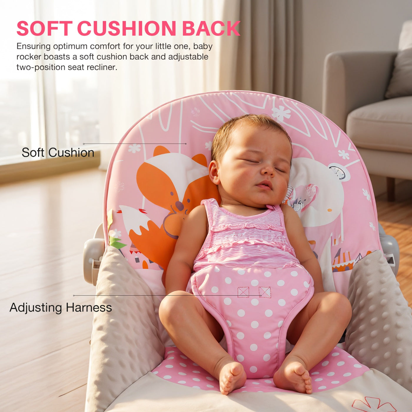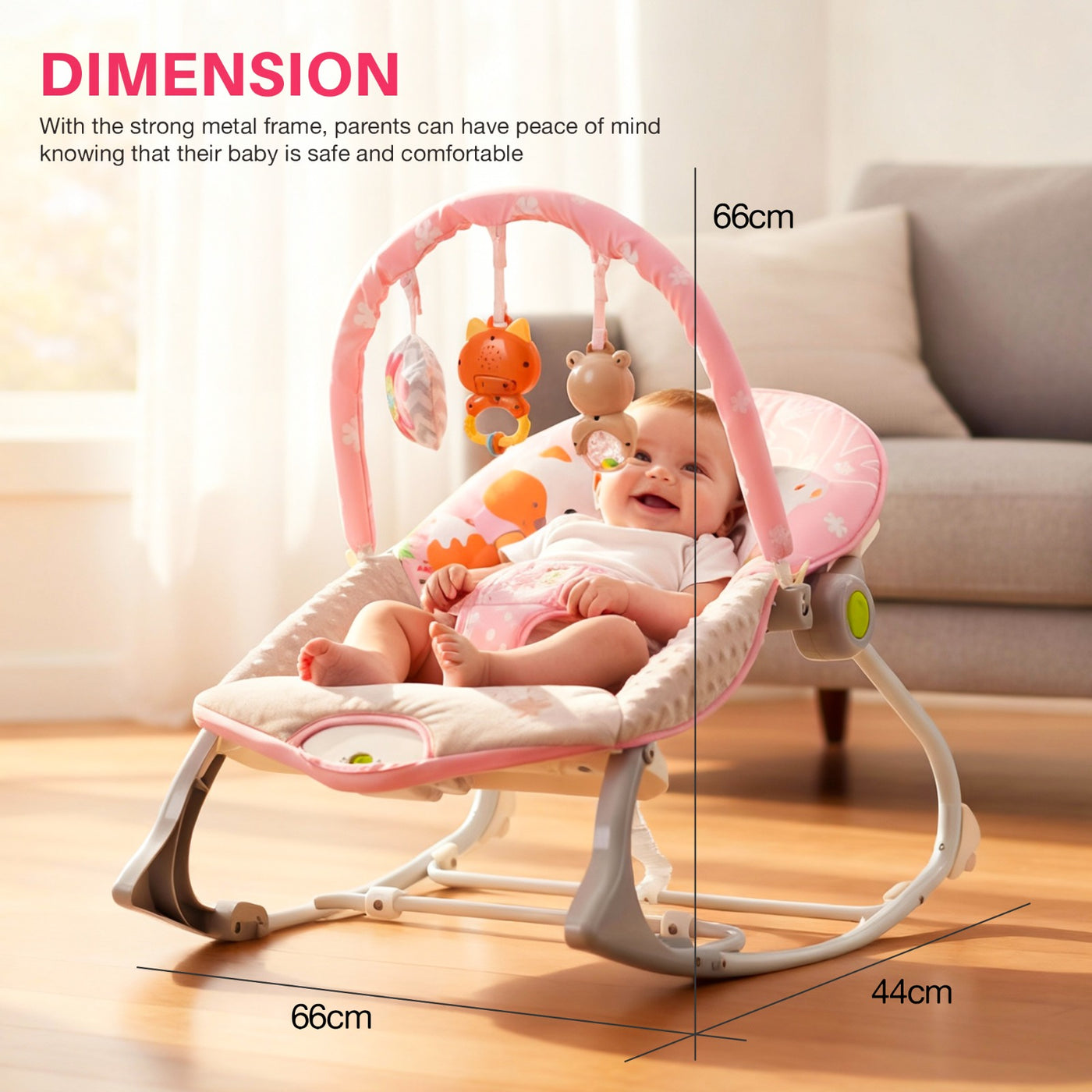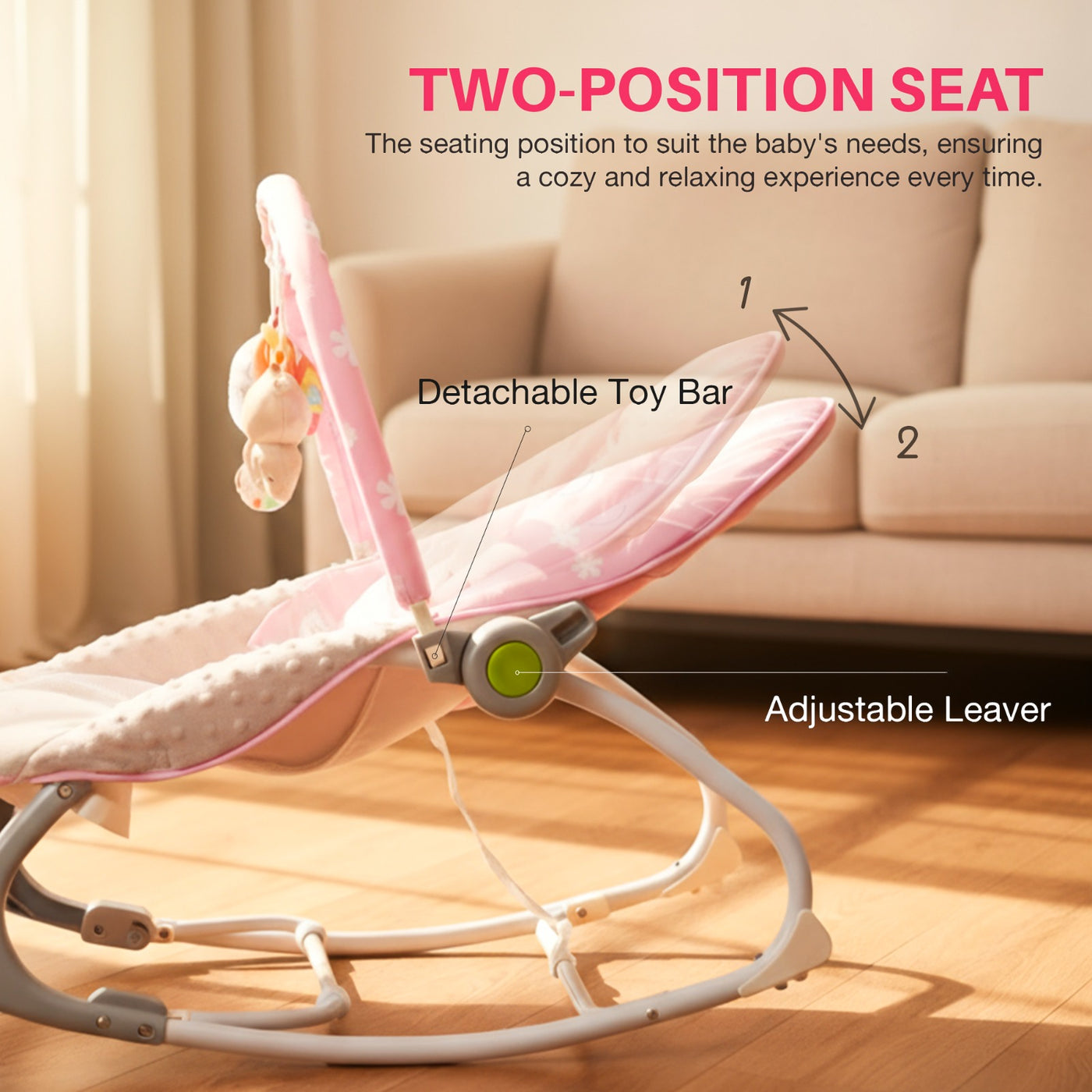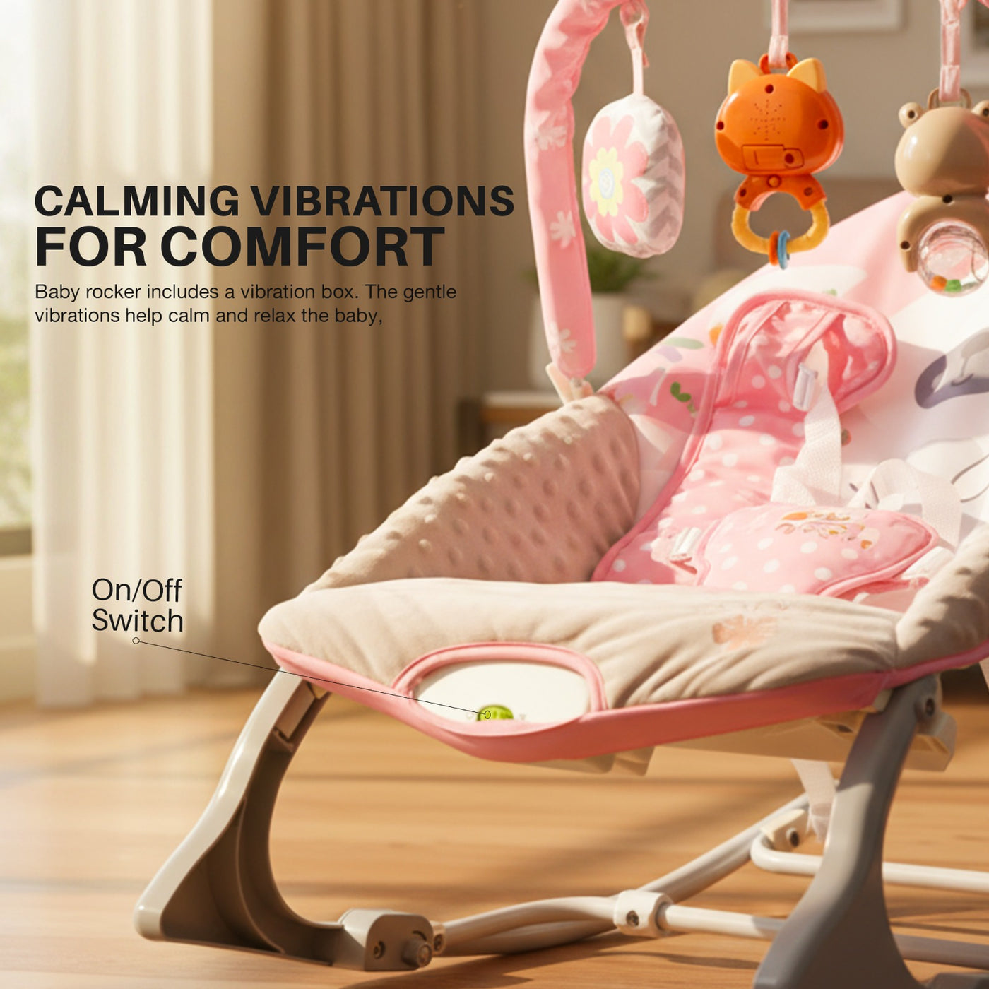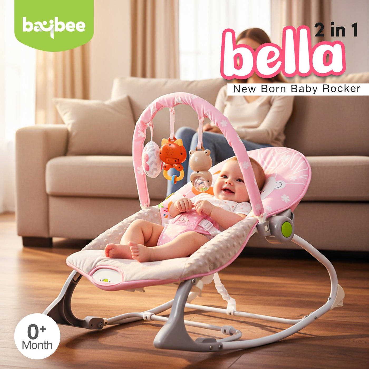 This versatile baby rocker can quickly convert into a rocking chair, providing a secure space for your baby to relax. Featuring an adjustable seat, it's perfect for both naptime and interactive play, adapting as your child grows from newborn to toddler. Equipped with gentle music and soothing vibrations, the Baybee 2 in 1 Bella Baby Rocker and Bouncer Chair helps calm your baby, making it an ideal choice for parents looking to ease their baby's discomfort and improve sleep patterns with sensory stimulation.