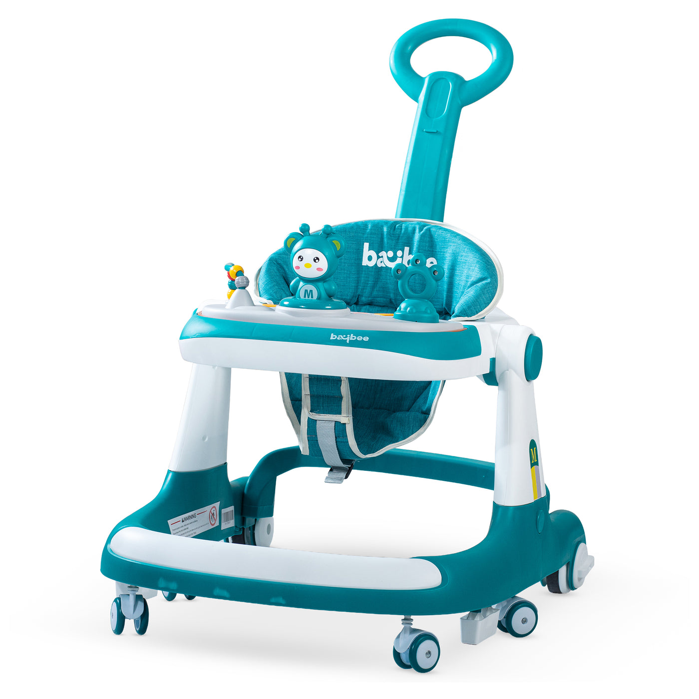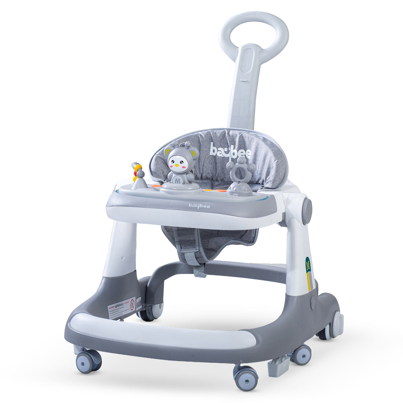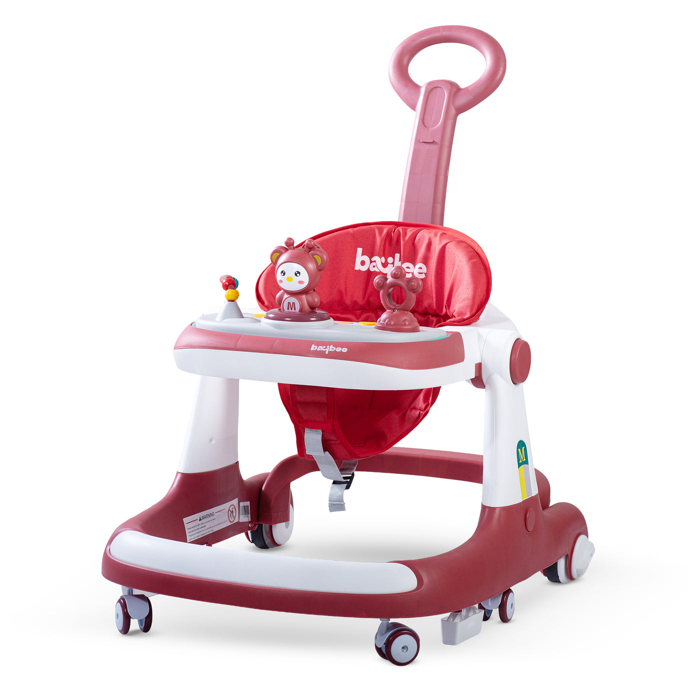 The Baybee walker for baby comes with multi function it can be used like a stroller for infant babies with the help of parental handle, it can be used as a normal walker or push walker. Its very compact and can be stored easily. The walker features Seat heights positions to grow with your child which allows you to easily keep your child at the right height as they grow. The Baby Activity Walker is suitable for toddlers weighing up to 15kgs. Walker for baby comes with a parental push handle and it is easy to install & remove. The parental control handle makes it easy for parents to control the walker while the child is in it and drive the child in a safe direction. A removable musical toy bar rattle for kids to learn and play with. The interactive toy will help stimulate your child’s senses and accelerate their early development. Improve their learning and independent thinking ability. The Kids Walker can be folded down and folded flat, which can make it easier to transport or convenient storage when not in use. 4 Sturdy 360° rotational wheels & 2 Big Wheels work on floors or carpets for easy moving with Speed Controller. The activity trays feature a large plastic tray that is easy to sanitize, and perfect for snack time or a favorite toy. The seat pad is washable and removable for easy cleaning. Designed for ultimate mobility and comfort, the seat pad is made of cushion foam & cotton material, your child can enjoy their breathable, lightweight, and secure seat. A high seat back provides additional support and comfort. Extra wide base for superior stability.