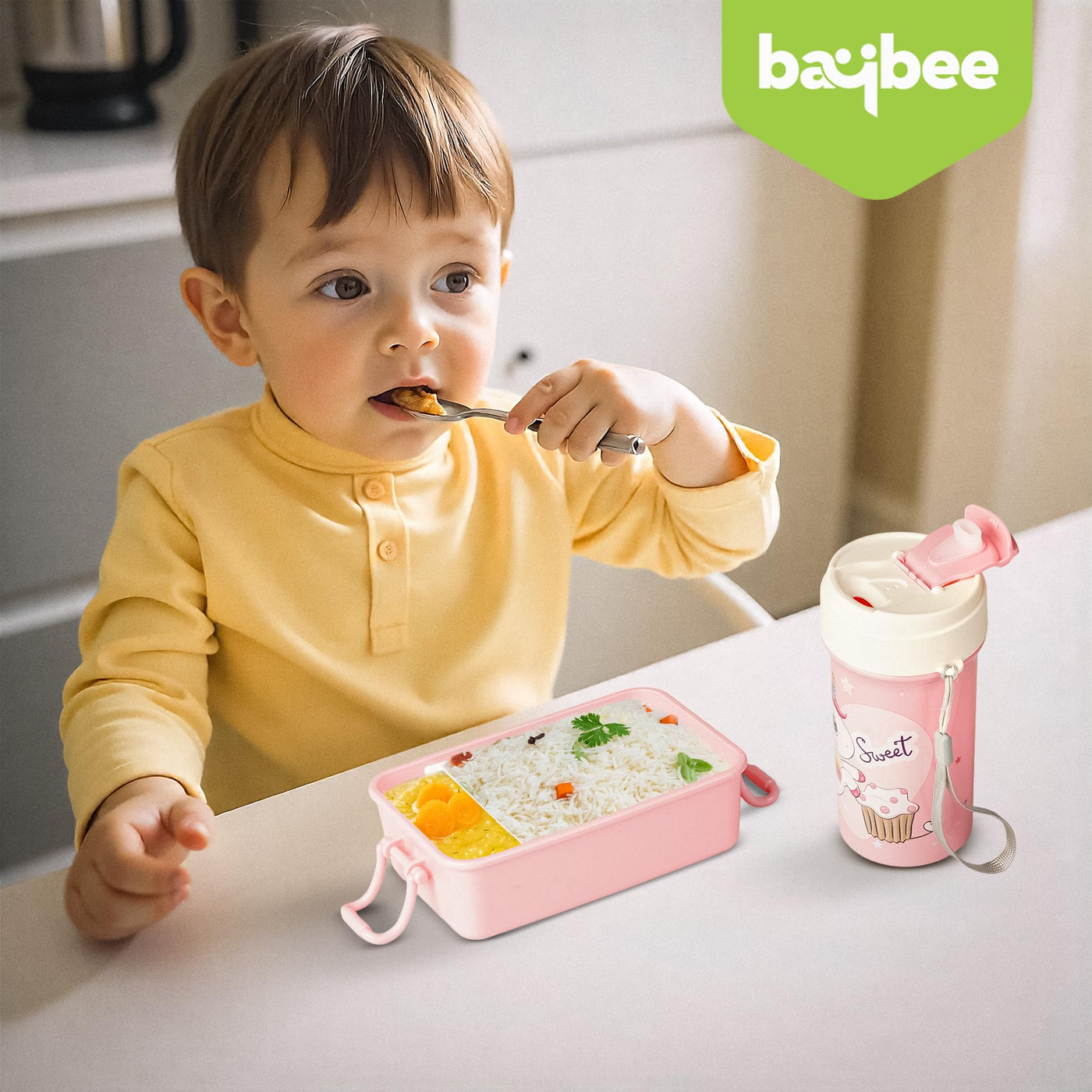 Baybee Tiffin Box for Kids Girls School Lunch Box for Kids Lunch Box with Water Bottle, Spoon & Fork a safe, stylish, and functional choice for everyday use. Made from BPA-free, food-grade material, this school tiffin box for girls keeps meals fresh, healthy, and ready to eat anywhere. This kids lunch box for school features a leak-proof design with secure locks to prevent spills, making it ideal for school, picnics, travel, and outdoor activities.
