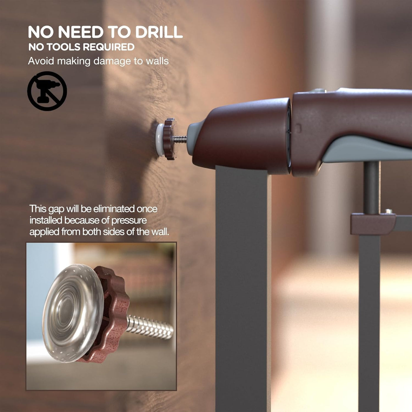 The Baybee Baby Safety Gate is built for secure, hassle-free protection with a one-touch release handle and spring-loaded latch that keeps the gate locked when not in use. It features an auto-close design—gates opened under 90° shut automatically, while those opened over 90° stay open. Made from durable all-steel construction, the baby gate includes a walk-through door for easy access and supports pressure mounting up to 95 kg without tools or drilling. Compatible with 10cm, 20cm, 30cm, and 45cm extensions, it can expand up to 175cm to fit wider spaces. The double-lock system is easy for adults but tough for little ones to open. Certified to EN1930:2011 and EN71 safety standards, this baby gate is perfect for doorways, stairs, and high-traffic areas, giving parents peace of mind with quick 5–10 minute installation.
