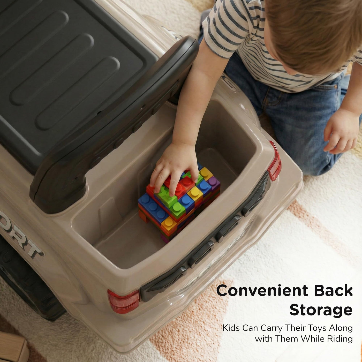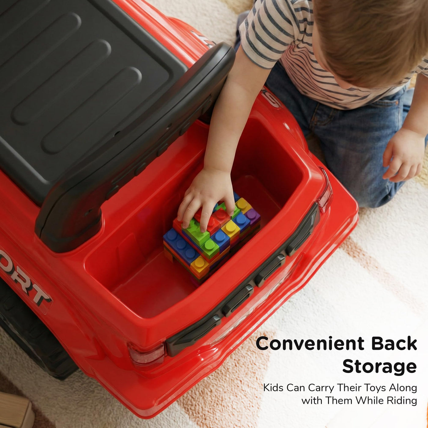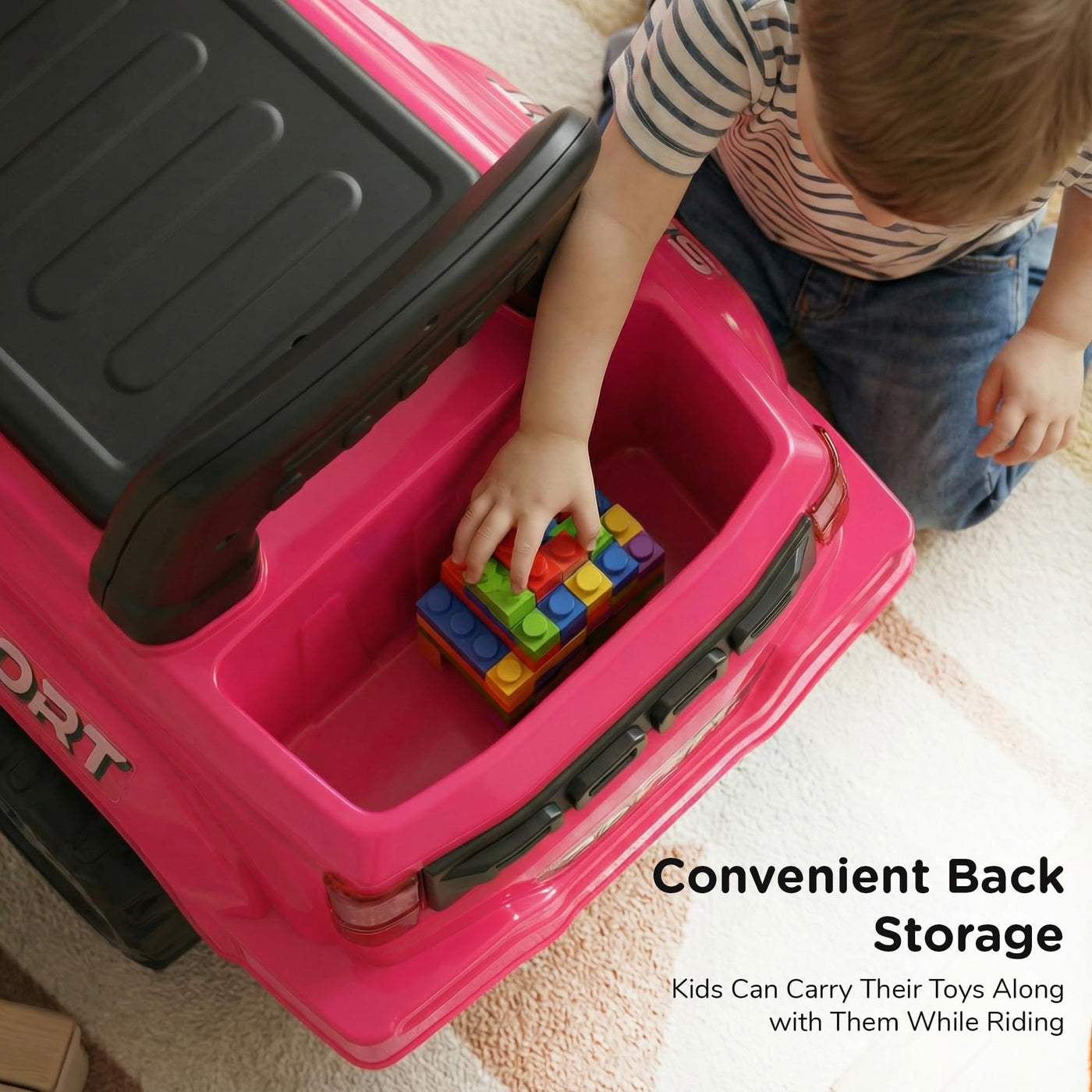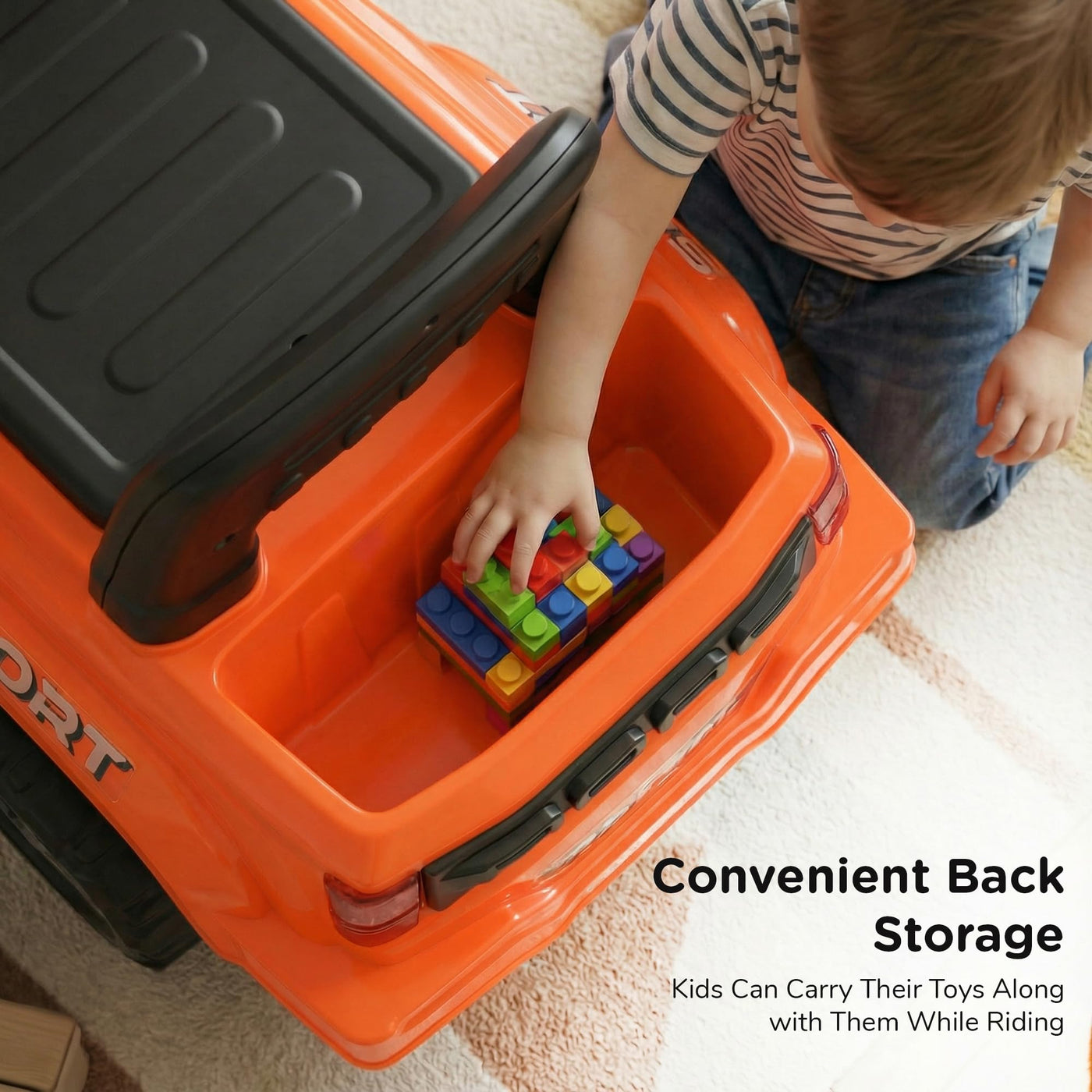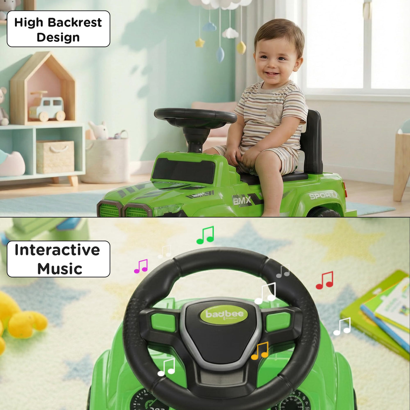 The Baybee Nitro is the perfect baby ride on car for kids, featuring bright LED headlights that enhance play during both day and night, making it ideal for both indoor and outdoor fun. Equipped with an interactive steering wheel, this kids car keeps your little one entertained with engaging music and sounds as they ride.
