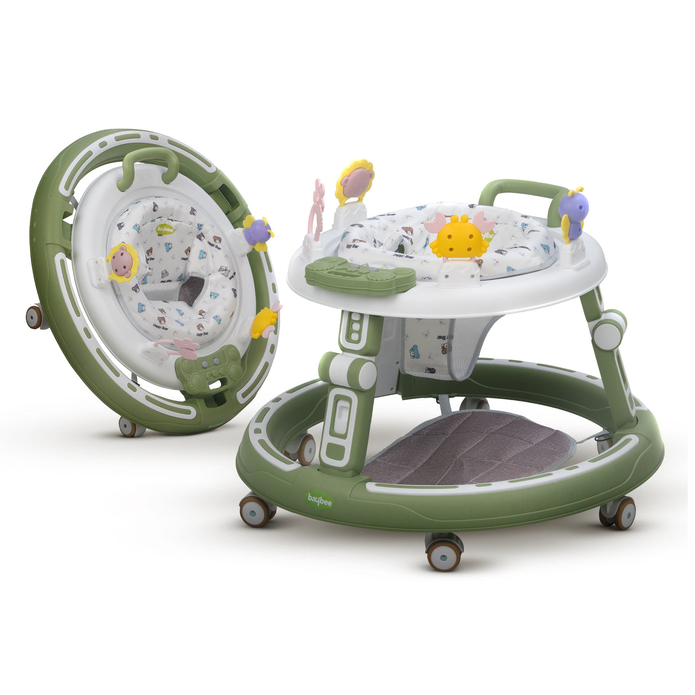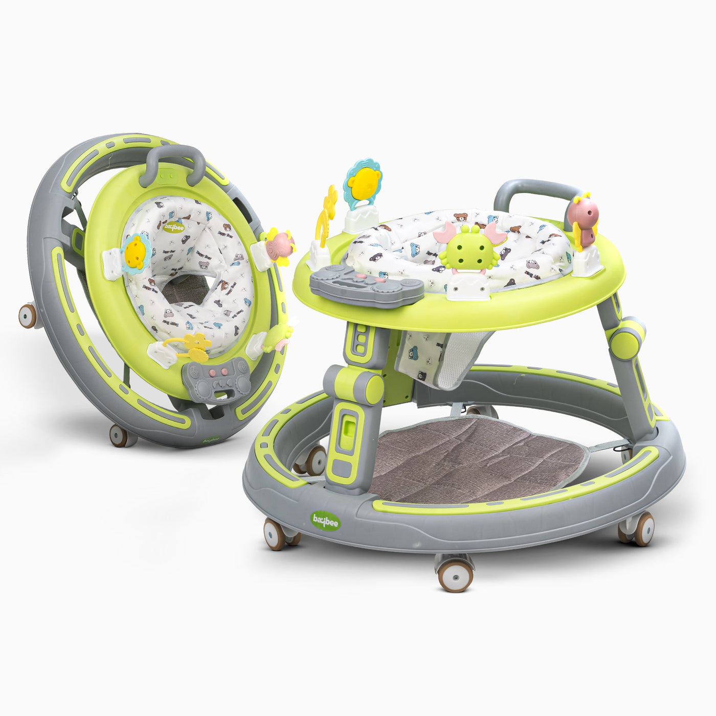 The Baybee Whizz Baby Walker grows with your baby! Its 3 height adjustments ensure optimal support and comfort for babies aged 6 to 24 months. Whether your little one is learning to stand or confidently taking their first steps, this walker adapts perfectly to their needs. Let your baby explore with ease! The Baybee Whizz Walker features a 360° rotating seat, providing your little adventurer with maximum mobility. This feature enhances their curiosity while ensuring they stay secure and enjoy every moment of discovery. Keep your baby entertained and engaged with a playful musical toy bar and interactive rattle toys! These delightful add-ons are perfect for stimulating auditory and motor skills, making every use of the walker a joyful experience. The removable and washable cushion ensures your baby's comfort and hygiene. Its ergonomic design supports long play sessions, while the easy-to-clean material keeps the walker fresh and ready for daily adventures. Designed for modern families, the Baybee Whizz Baby Walker is lightweight and folds easily for storage or travel. Whether at home or on the go, this compact activity push walker makes parenting easier while keeping your baby happy and engaged!