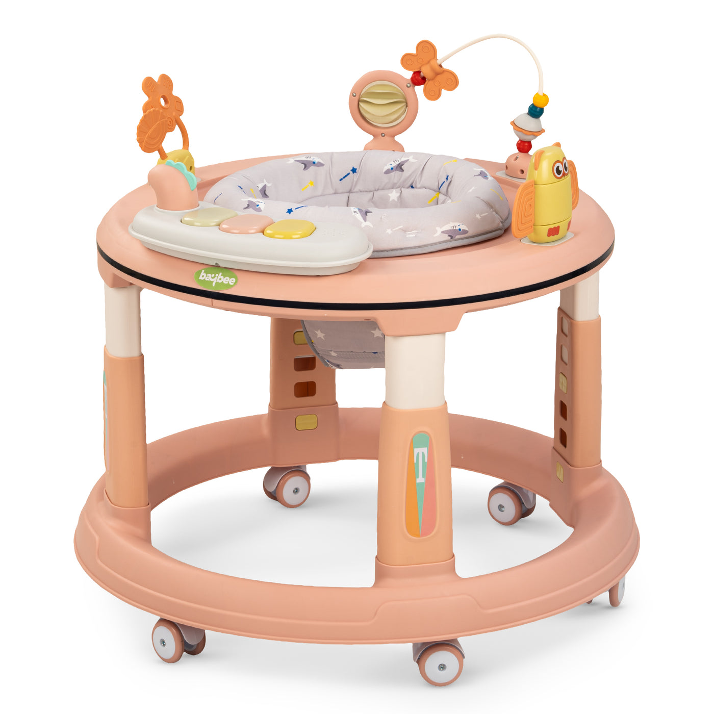 👶【Multifunctional toy table 】: The multifunctional baby walker comes with 360-degree swivel seat ensures your child can play with all their toys easily. Adorable owls, flowers, colourful lighting and piano music and comprehensive Maze Beats toys on the activity table create an enchanting entertainment experience for your baby. This centre provides fun playtime for your children.