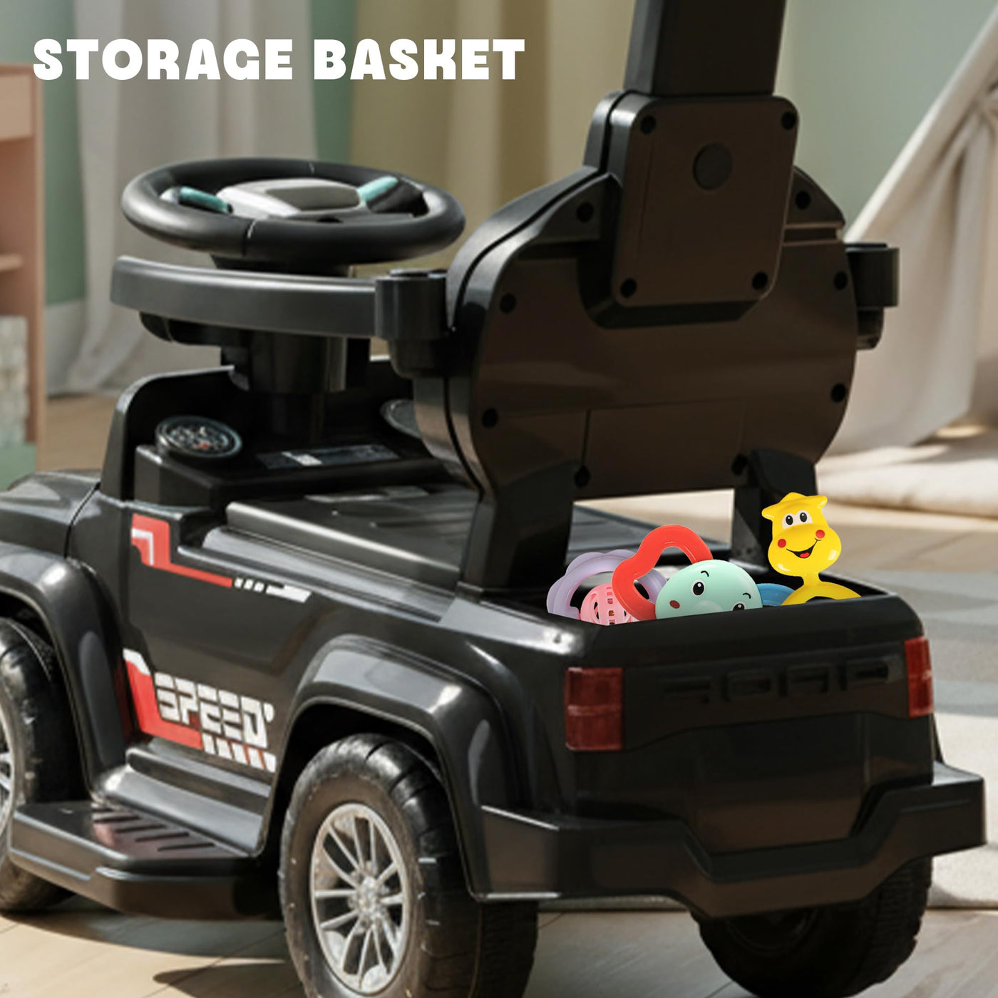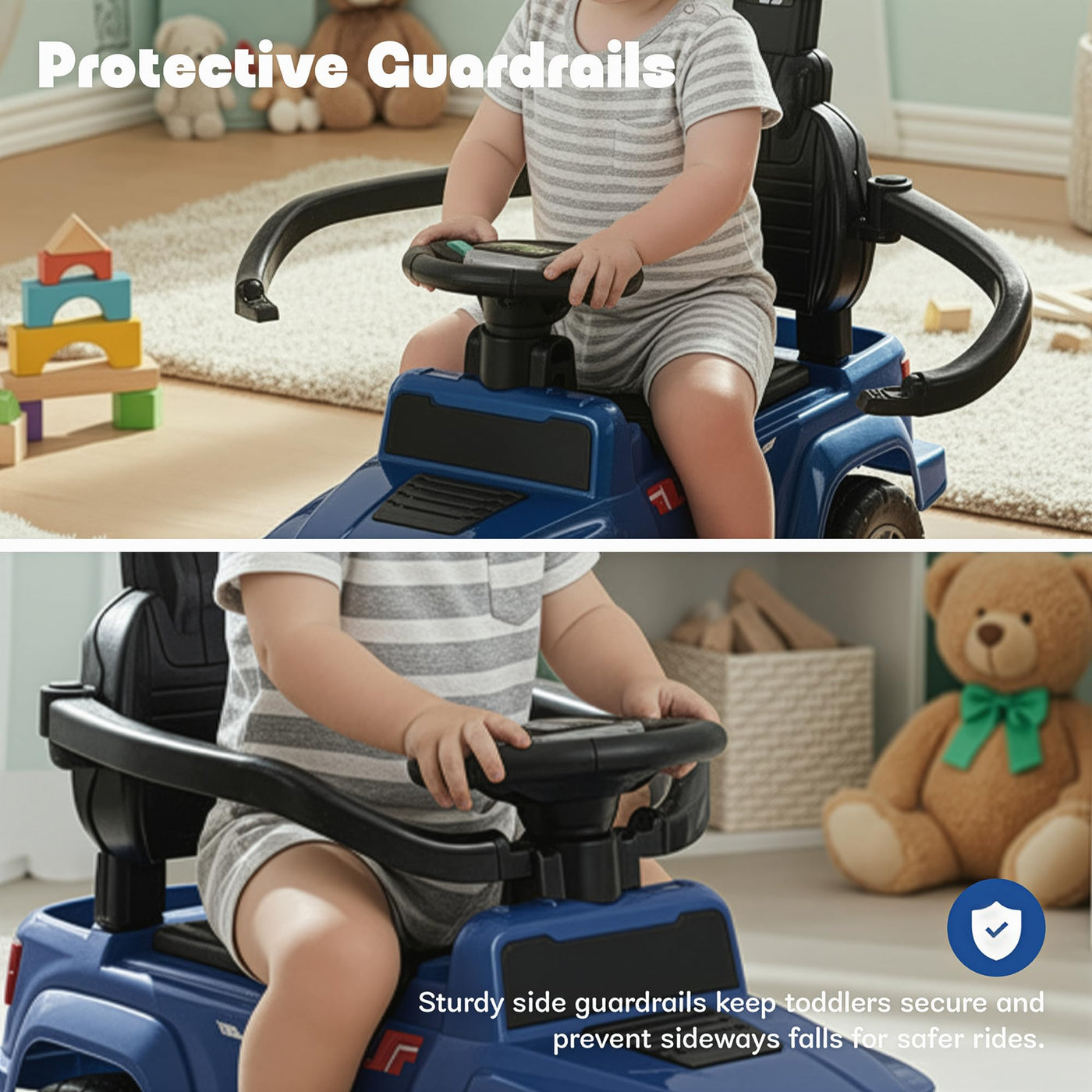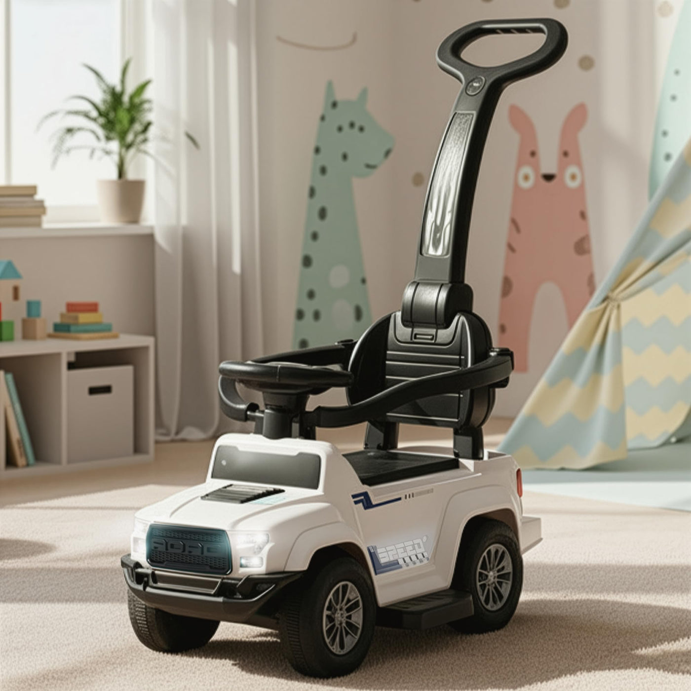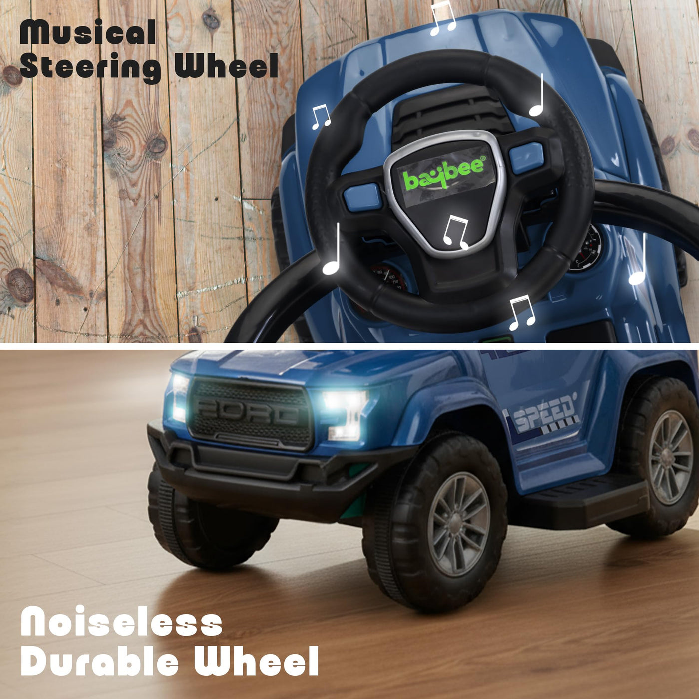 The Baybee Roady Pro Ride-On Baby Car is designed to offer both fun and safety for toddlers aged 1–3 years. With built-in music and LED lights, it keeps little ones entertained while the comfortable backrest and sturdy design ensure a secure and enjoyable ride. Crafted from high-quality, child-friendly materials, this push ride-on Jeep is equipped with durable wheels and an anti-rollover design, providing stability and peace of mind for parents.