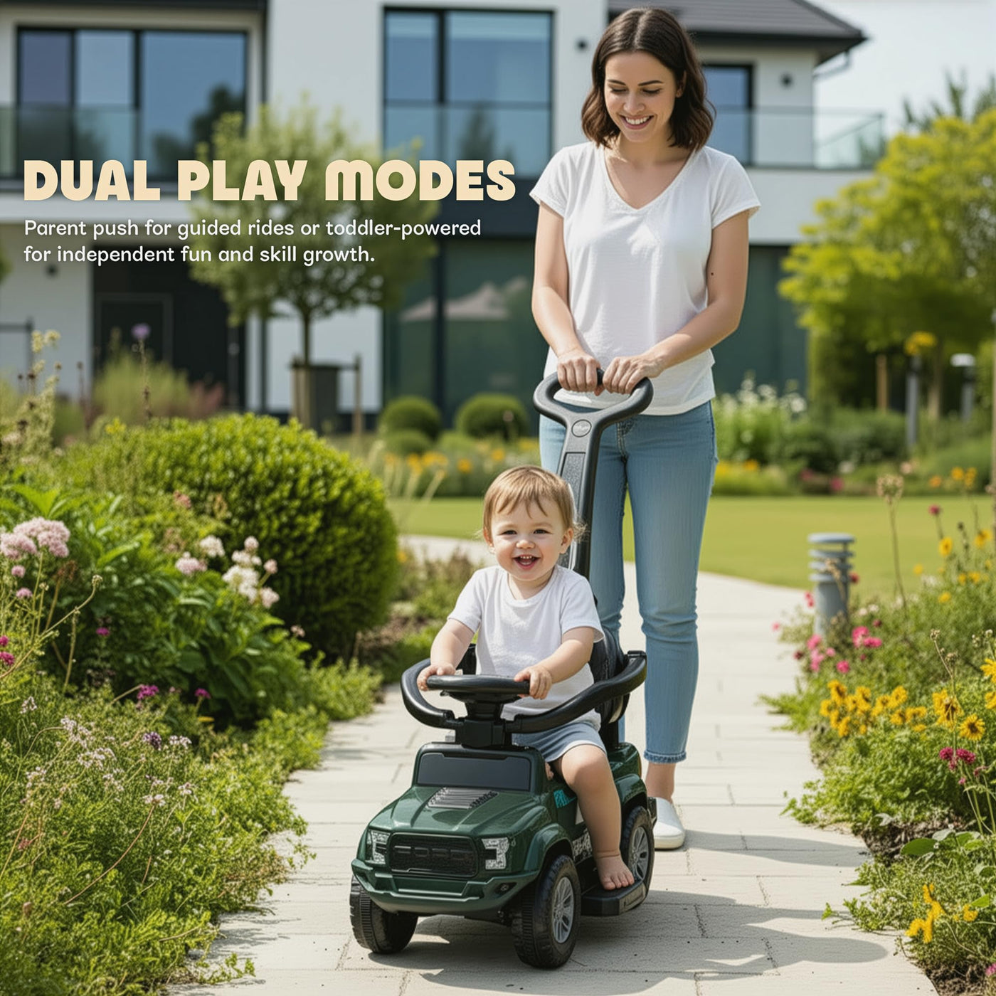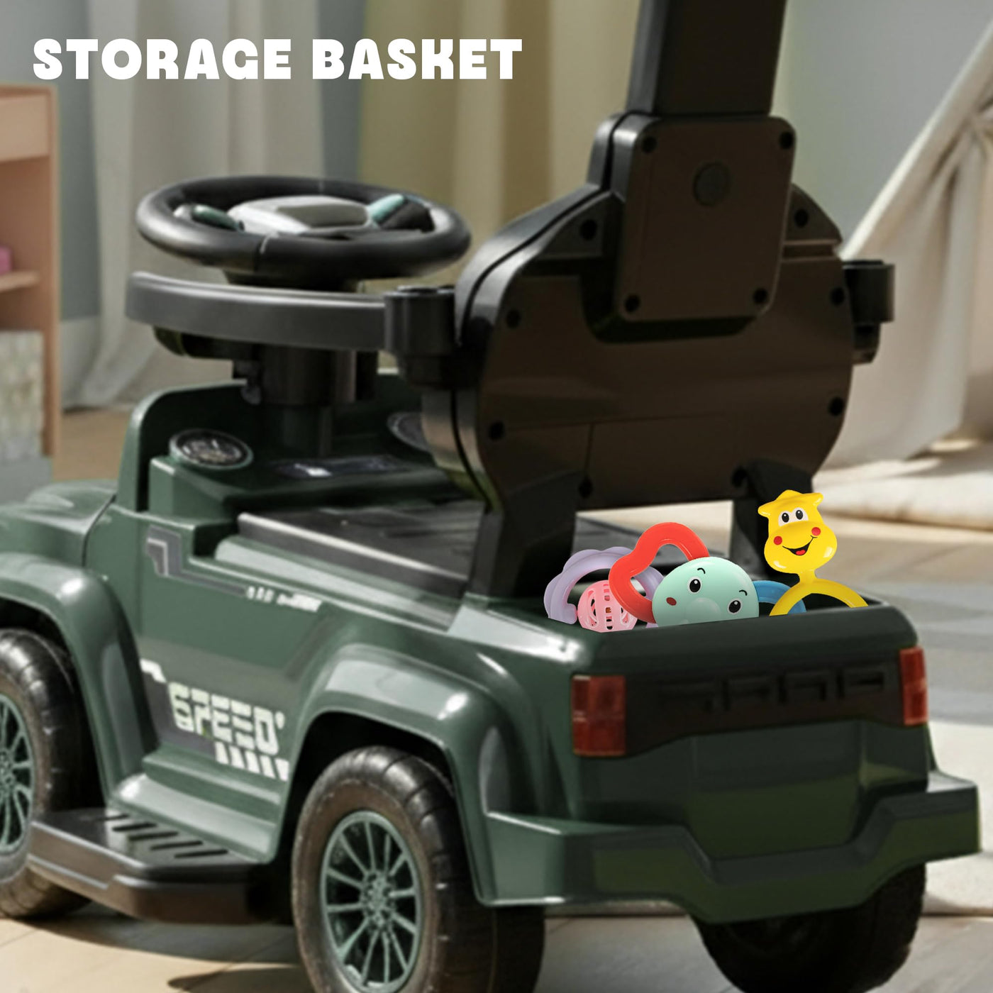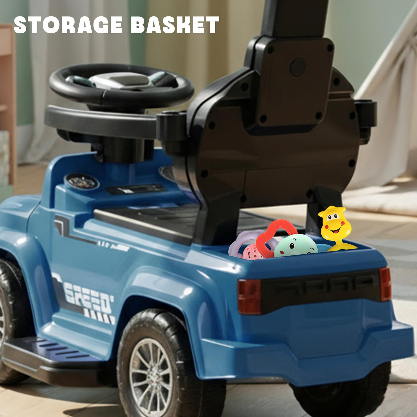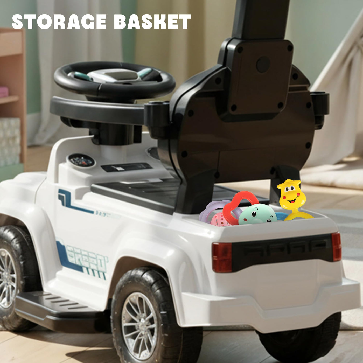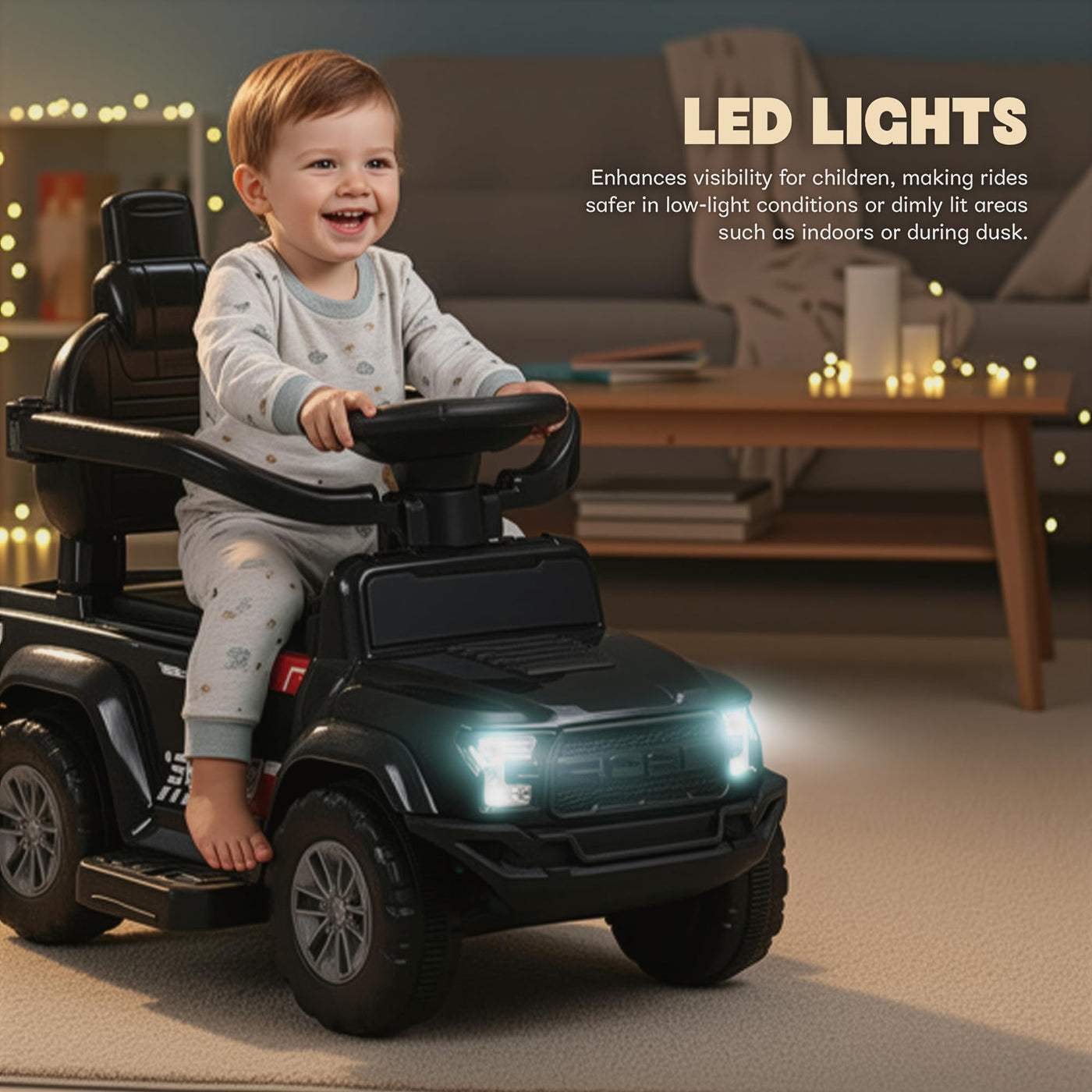The Baybee Roady Pro Ride-On Baby Car is designed to offer both fun and safety for toddlers aged 1–3 years. With built-in music and LED lights, it keeps little ones entertained while the comfortable backrest and sturdy design ensure a secure and enjoyable ride. Crafted from high-quality, child-friendly materials, this push ride-on Jeep is equipped with durable wheels and an anti-rollover design, providing stability and peace of mind for parents.