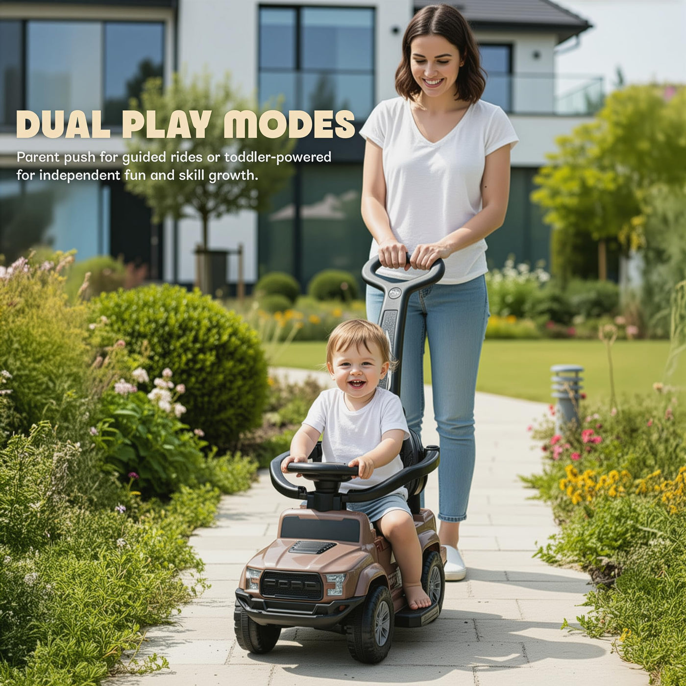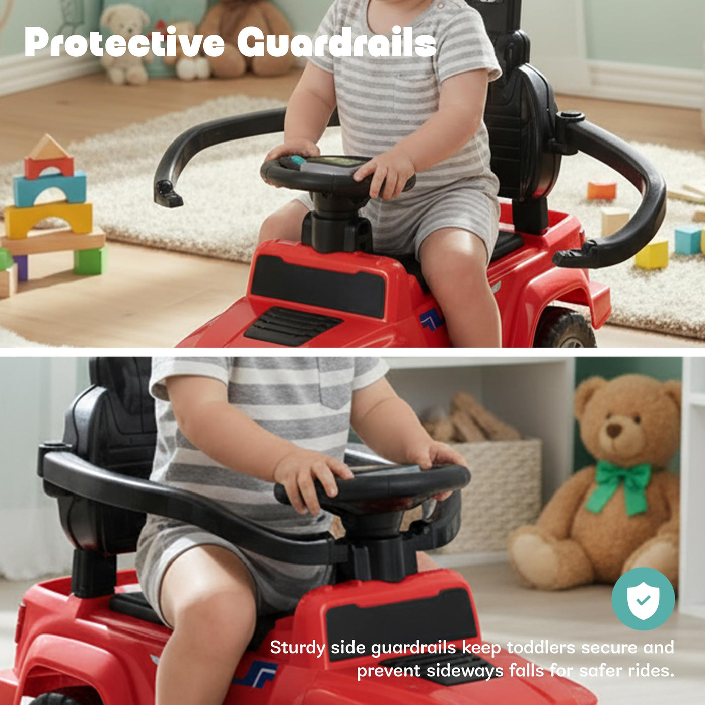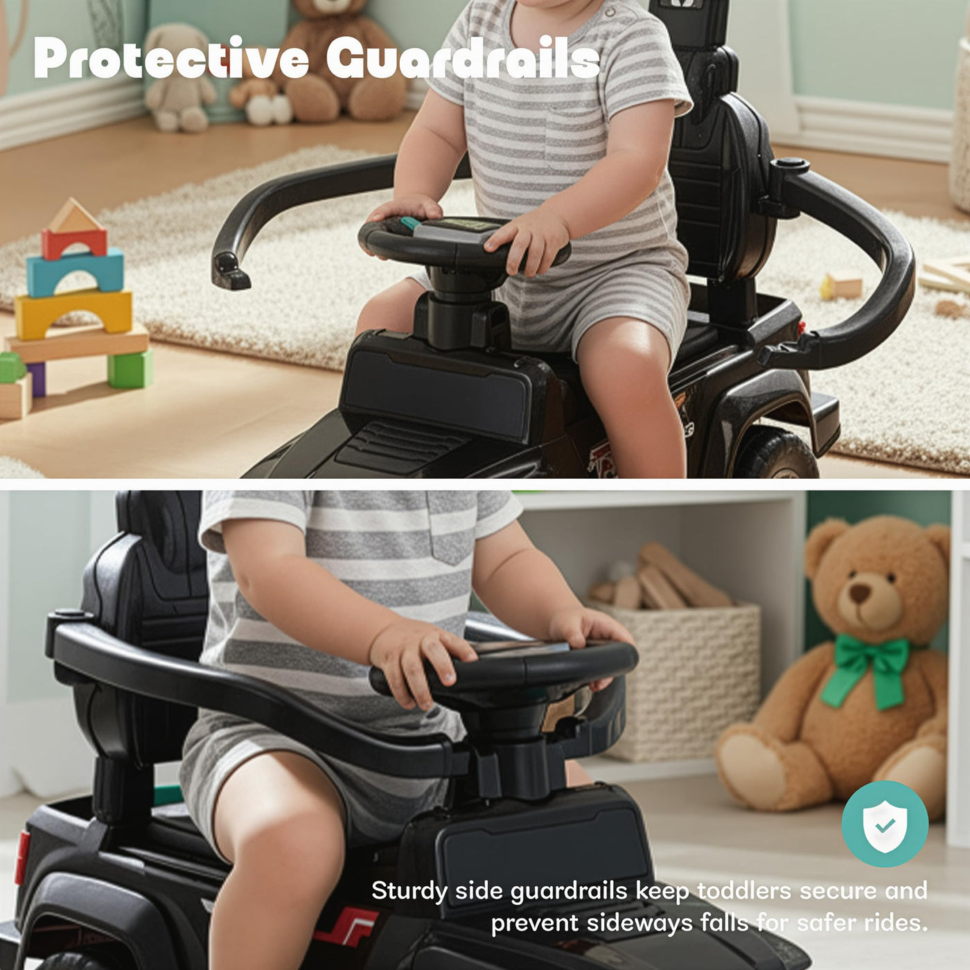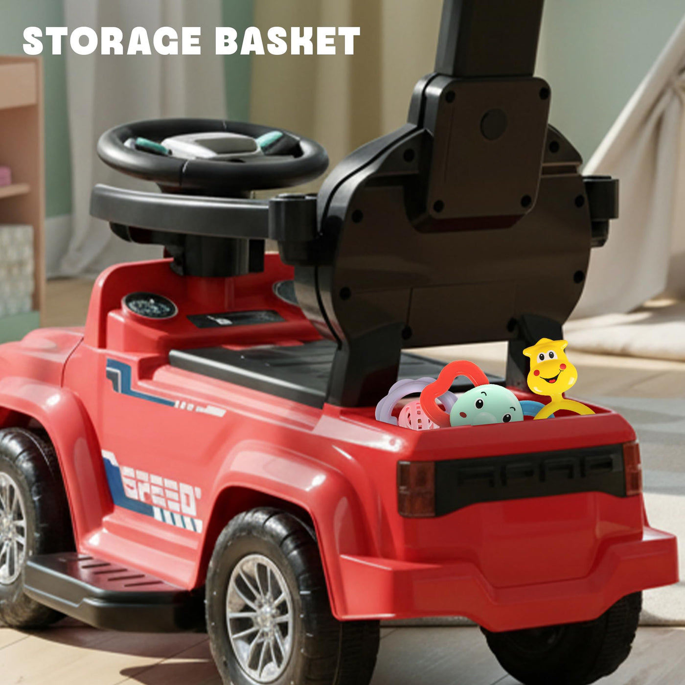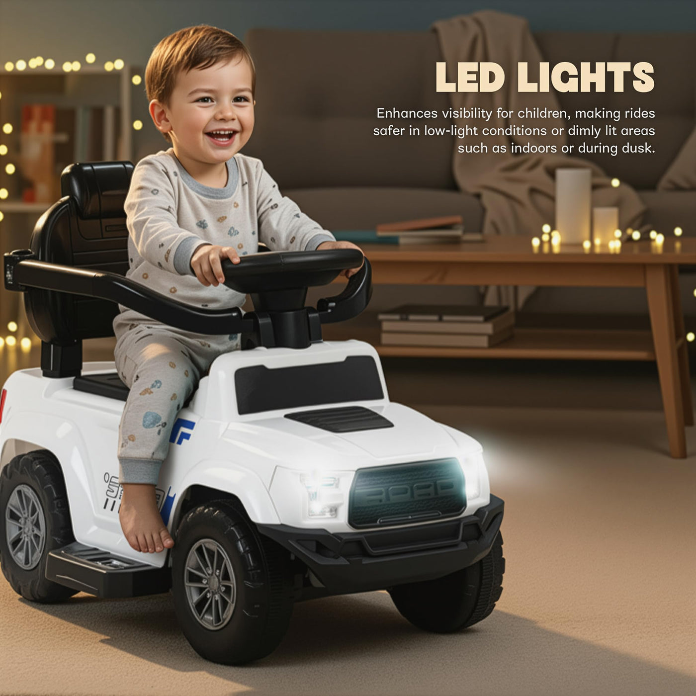 The Baybee Roady Pro Ride-On Baby Car is designed to offer both fun and safety for toddlers aged 1–3 years. With built-in music and LED lights, it keeps little ones entertained while the comfortable backrest and sturdy design ensure a secure and enjoyable ride. Crafted from high-quality, child-friendly materials, this push ride-on Jeep is equipped with durable wheels and an anti-rollover design, providing stability and peace of mind for parents.