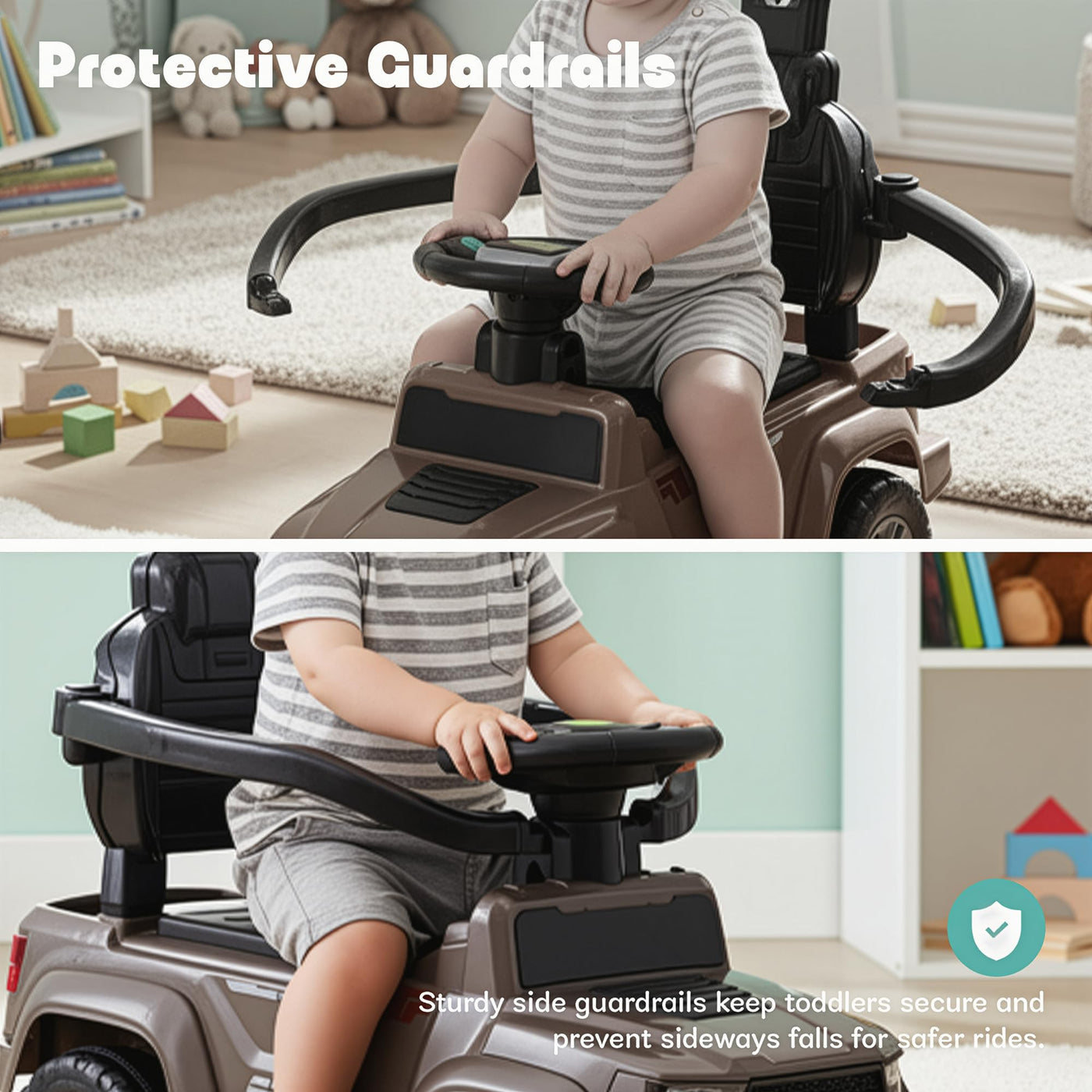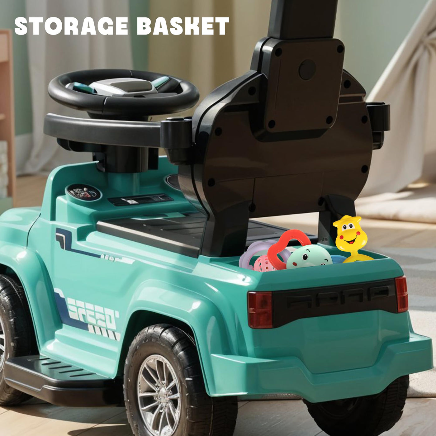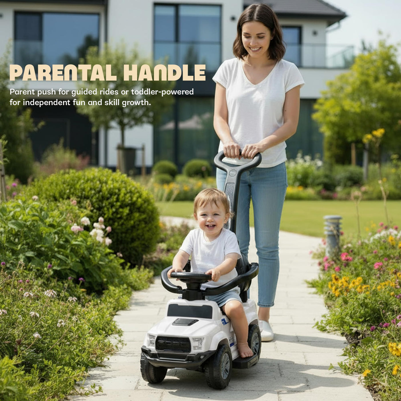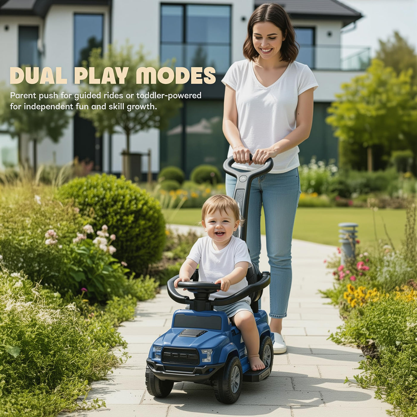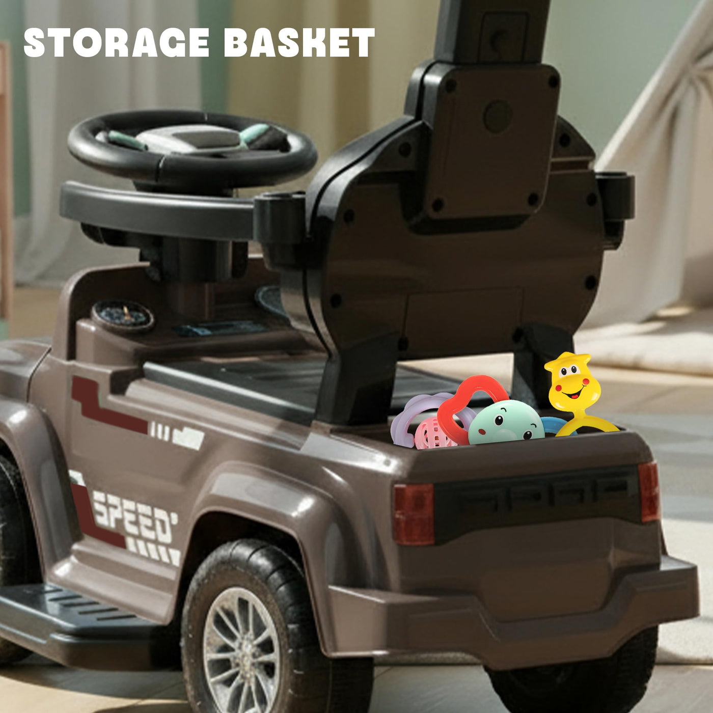 The Baybee Roady Pro Ride-On Baby Car is designed to offer both fun and safety for toddlers aged 1–3 years. With built-in music and LED lights, it keeps little ones entertained while the comfortable backrest and sturdy design ensure a secure and enjoyable ride. Crafted from high-quality, child-friendly materials, this push ride-on Jeep is equipped with durable wheels and an anti-rollover design, providing stability and peace of mind for parents.