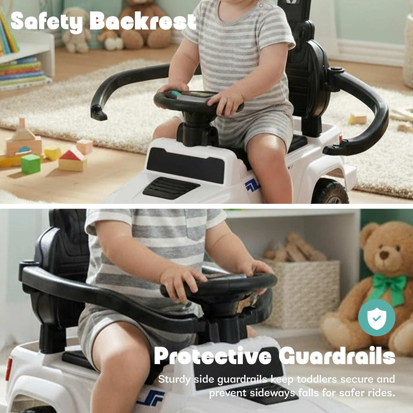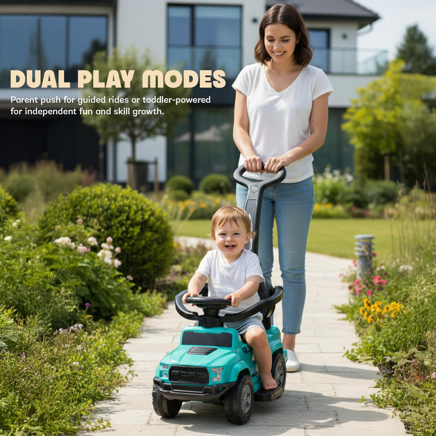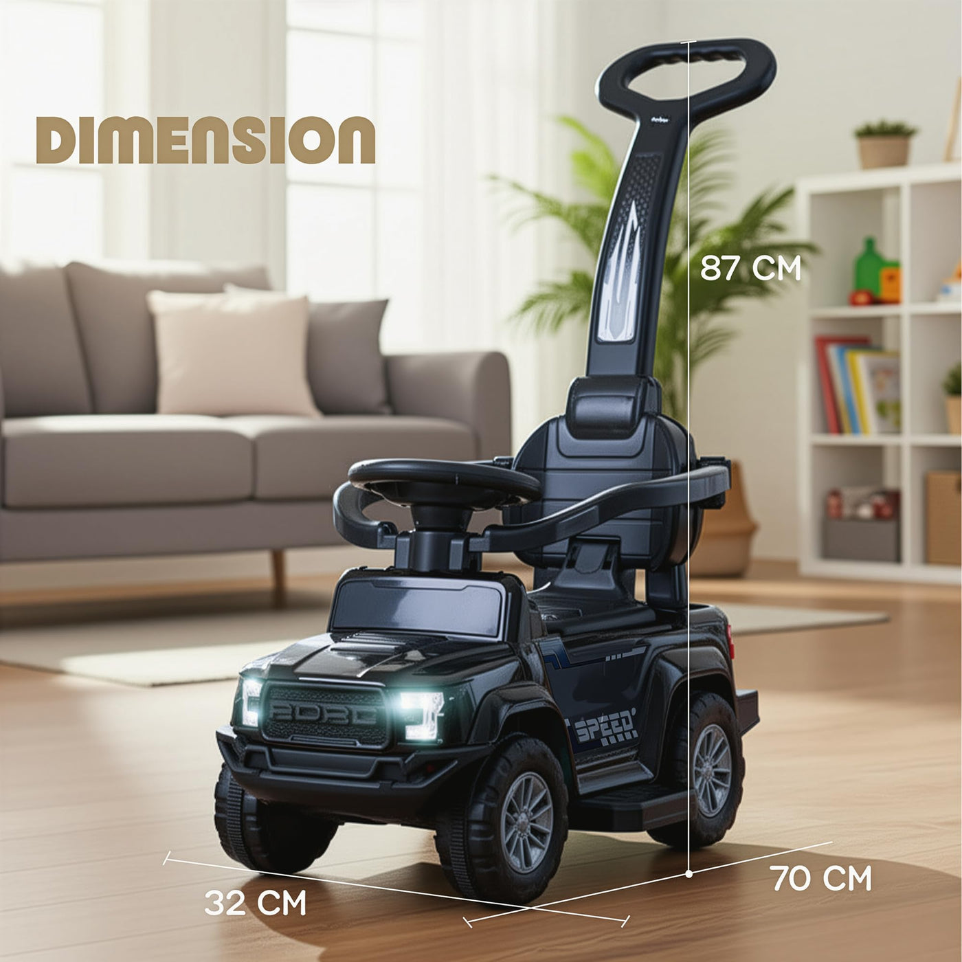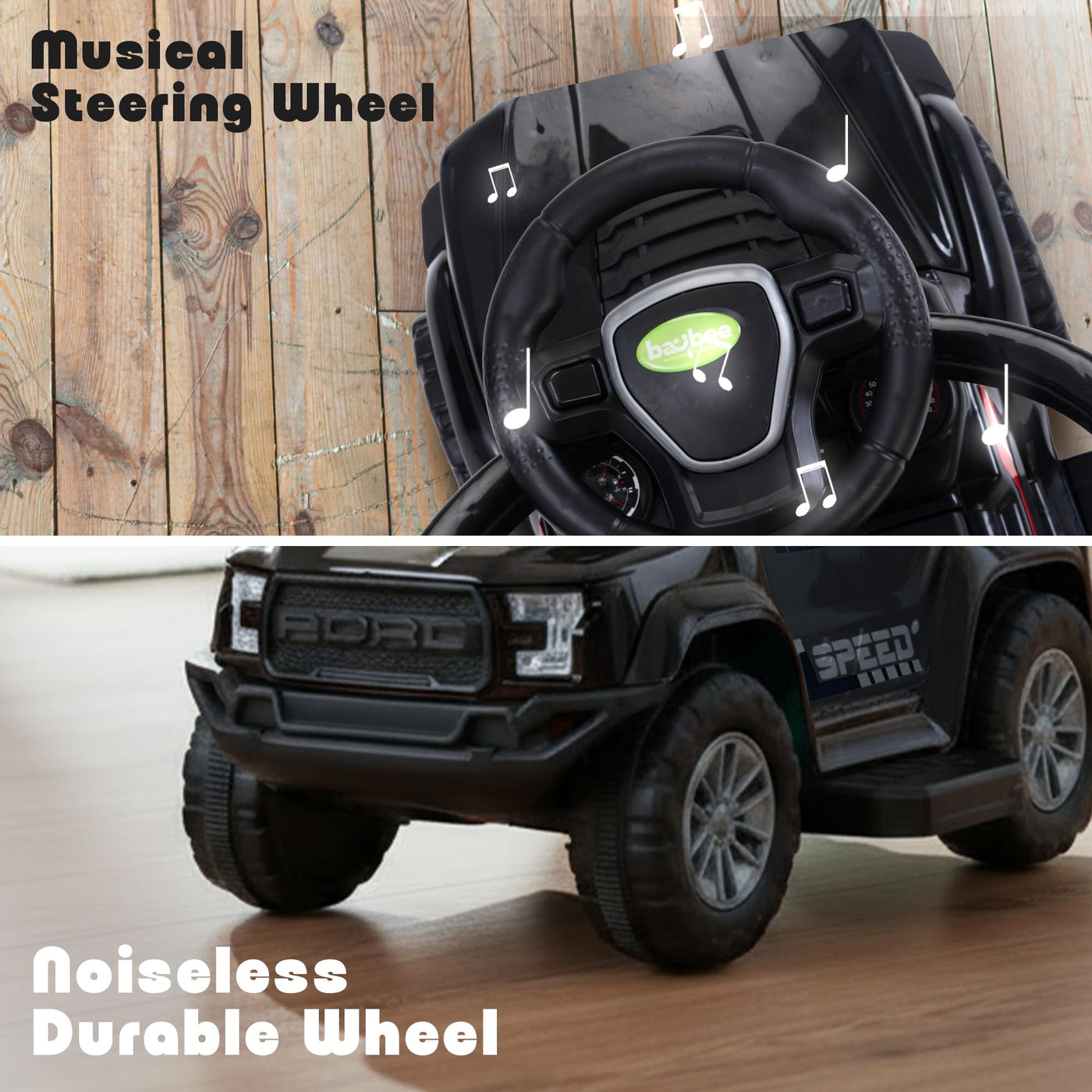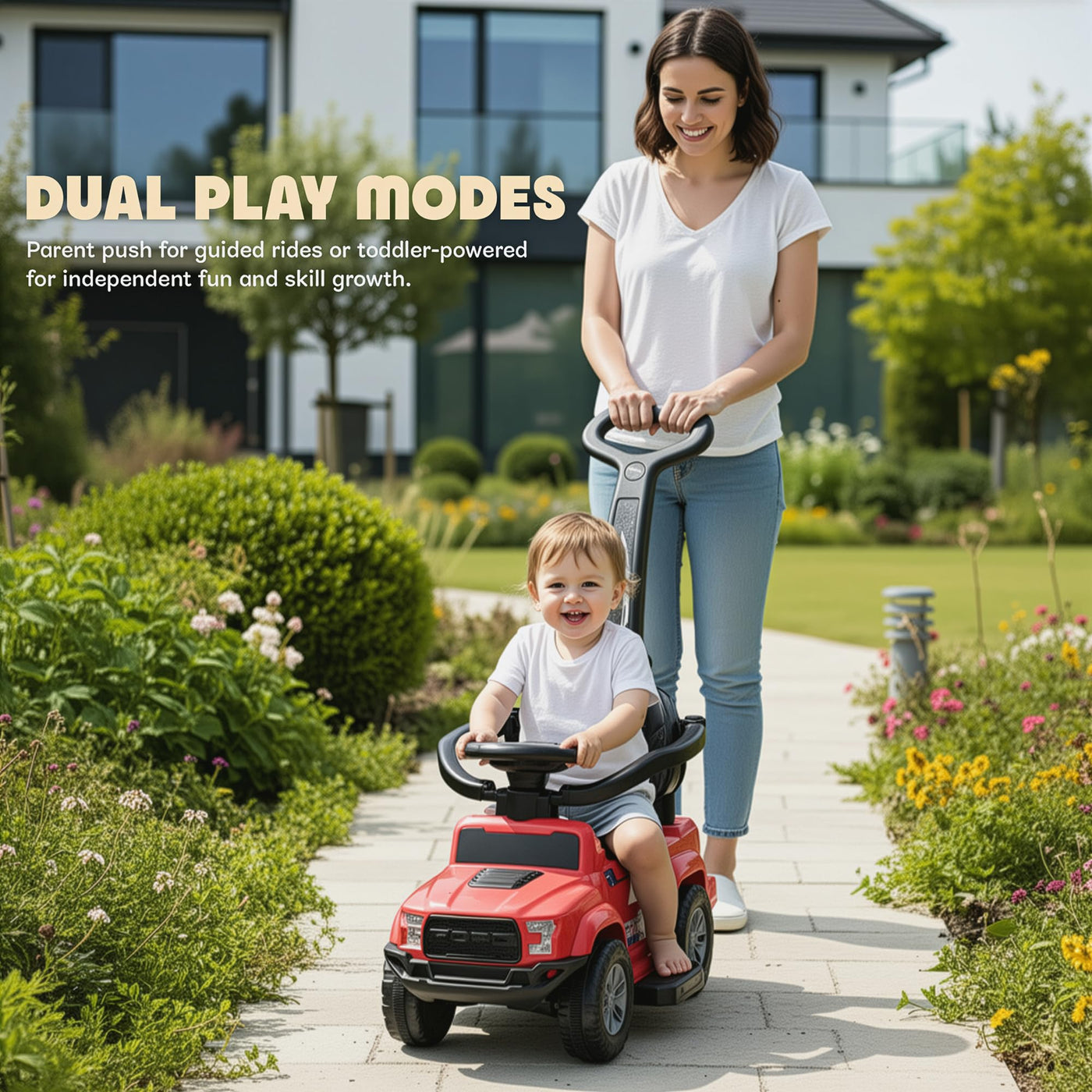 The Baybee Roady Pro Ride-On Baby Car is designed to offer both fun and safety for toddlers aged 1–3 years. With built-in music and LED lights, it keeps little ones entertained while the comfortable backrest and sturdy design ensure a secure and enjoyable ride. Crafted from high-quality, child-friendly materials, this push ride-on Jeep is equipped with durable wheels and an anti-rollover design, providing stability and peace of mind for parents.