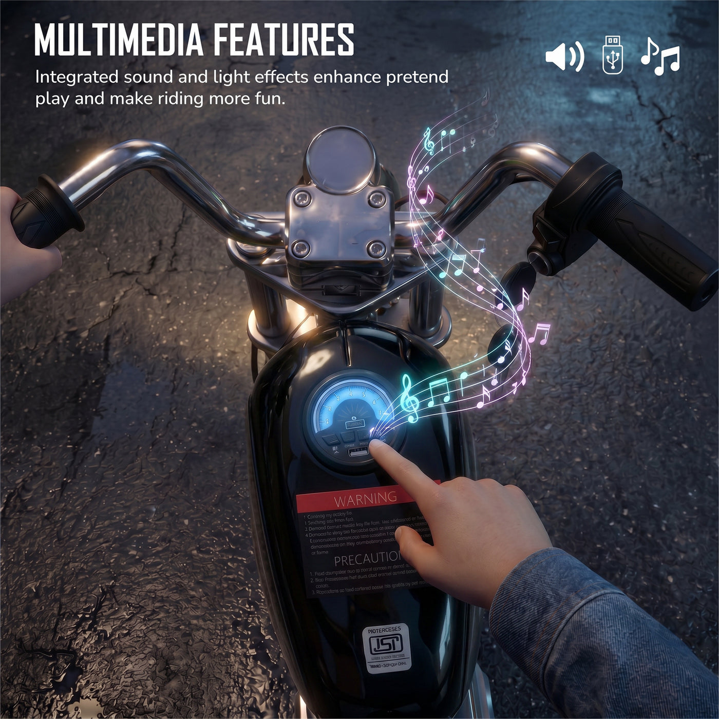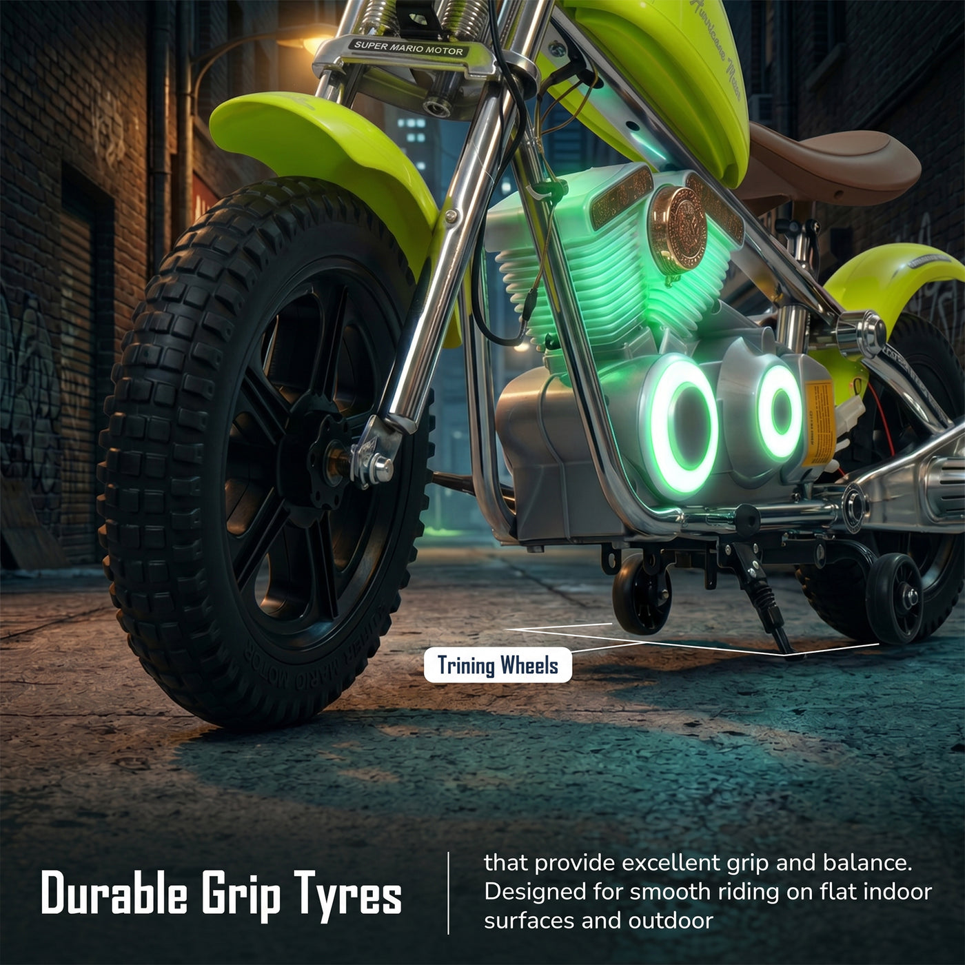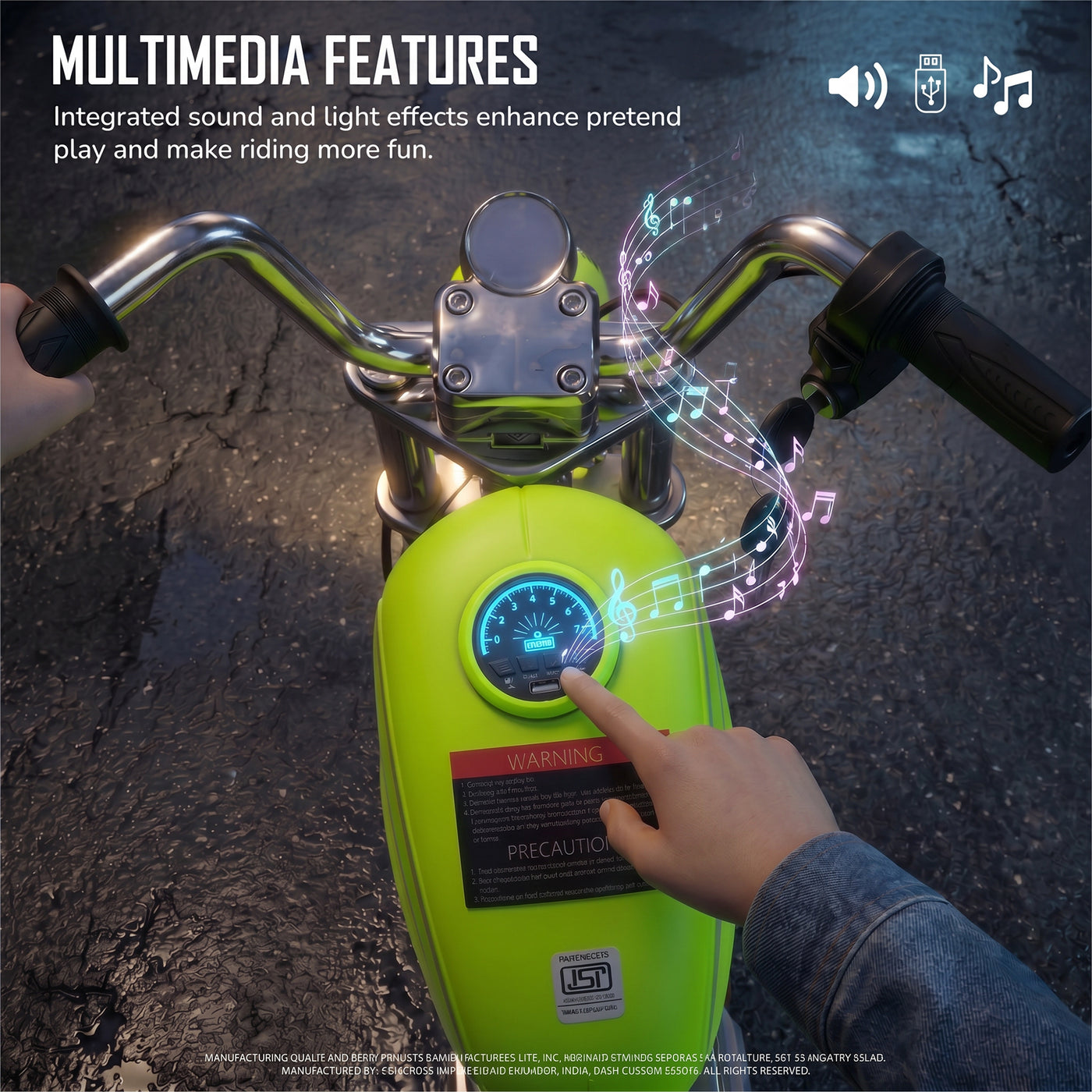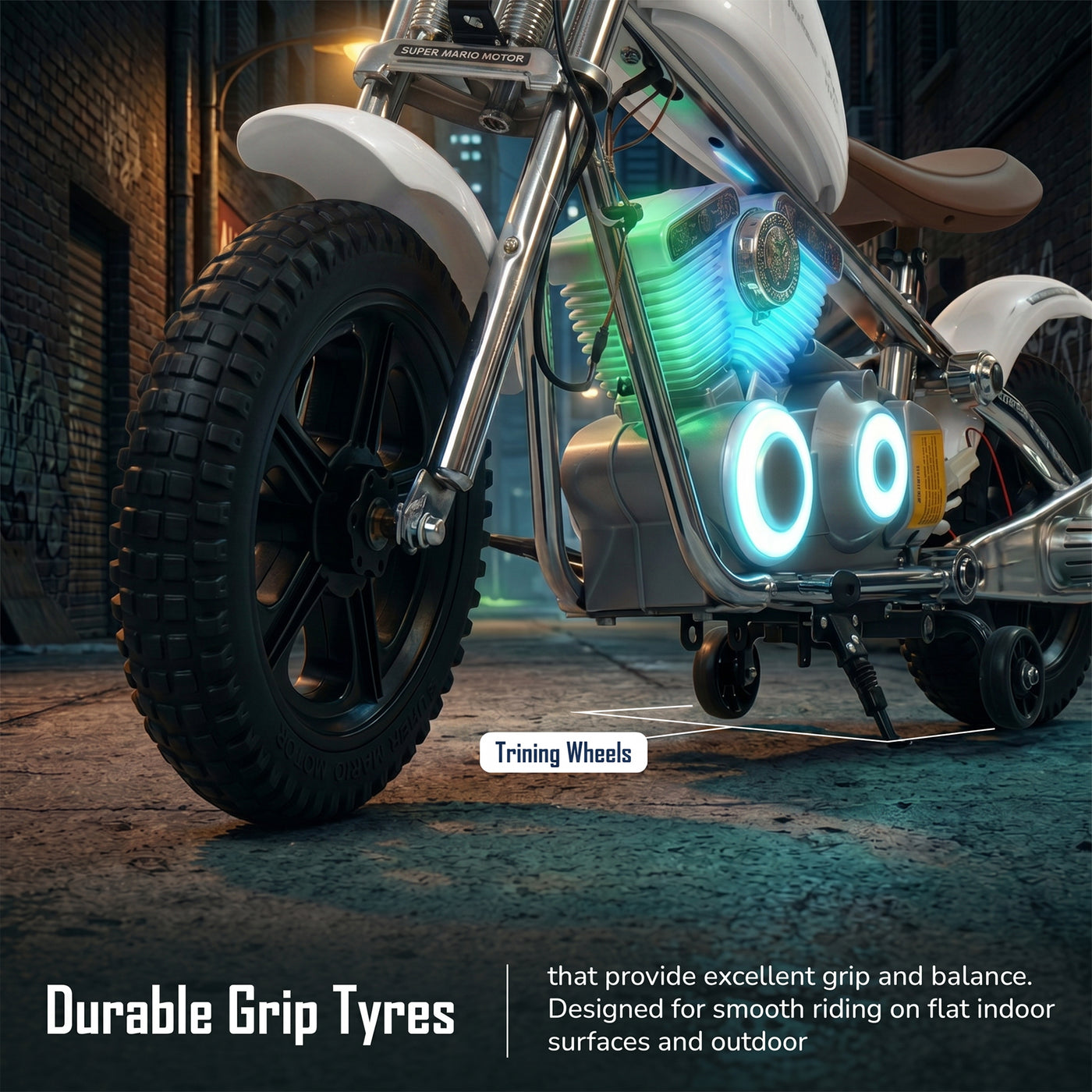 The Baybee ChopperX electric bike for kids delivers smooth riding with bright LED lights, music, and realistic styling for exciting indoor & outdoor play. This battery operated bike for kids features a long-lasting rechargeable battery for extended fun, making it a perfect rechargeable ride on toy bike. Designed with adjustable seating, this stylish kids bike grows with your child, offering comfort, support, and a premium riding experience.