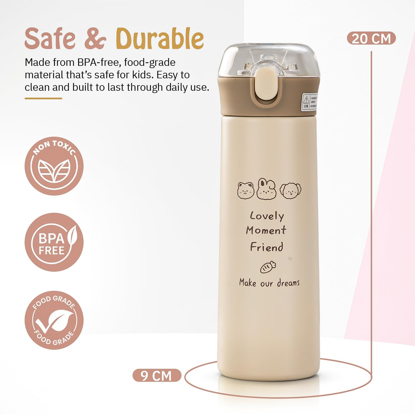 Make hydration easy and safe with the Baybee Premium Baby Sipper Bottle, thoughtfully designed for babies 6 to 12 months, toddlers, and kids up to 2 years. This baby sipper bottle features a soft silicone straw that's gentle on gums and perfect for babies learning to sip. Made from BPA free and non-toxic materials, it ensures your little one's health and safety at every use. Whether you're looking for a sipper for 1 year baby, a milk sipper for kids 2 years, or a reliable sippy cup for toddlers, this all-in-one design is perfect for everyday use. The leakproof and spill-proof design makes it ideal for travel, daycare, or use at home. It functions as a sipper water bottle for kids 1 year, a baby water bottle with straw, or even a training sipper cup for early learners. With an easy-to-hold ergonomic grip, it supports independent drinking for babies and toddlers alike. Whether you use it as a sippy cup, a milk bottle, or a water bottle for 1 year baby, it's built to last and easy to clean. Suitable for baby sipper bottles for 1 year old, kids water bottle stainless steel alternatives, and perfect for growing children. Trust Baybee to deliver a safe, spill-proof, and baby-friendly hydration solution with this high-quality sipper bottle for kids 6 to 12 months and beyond
