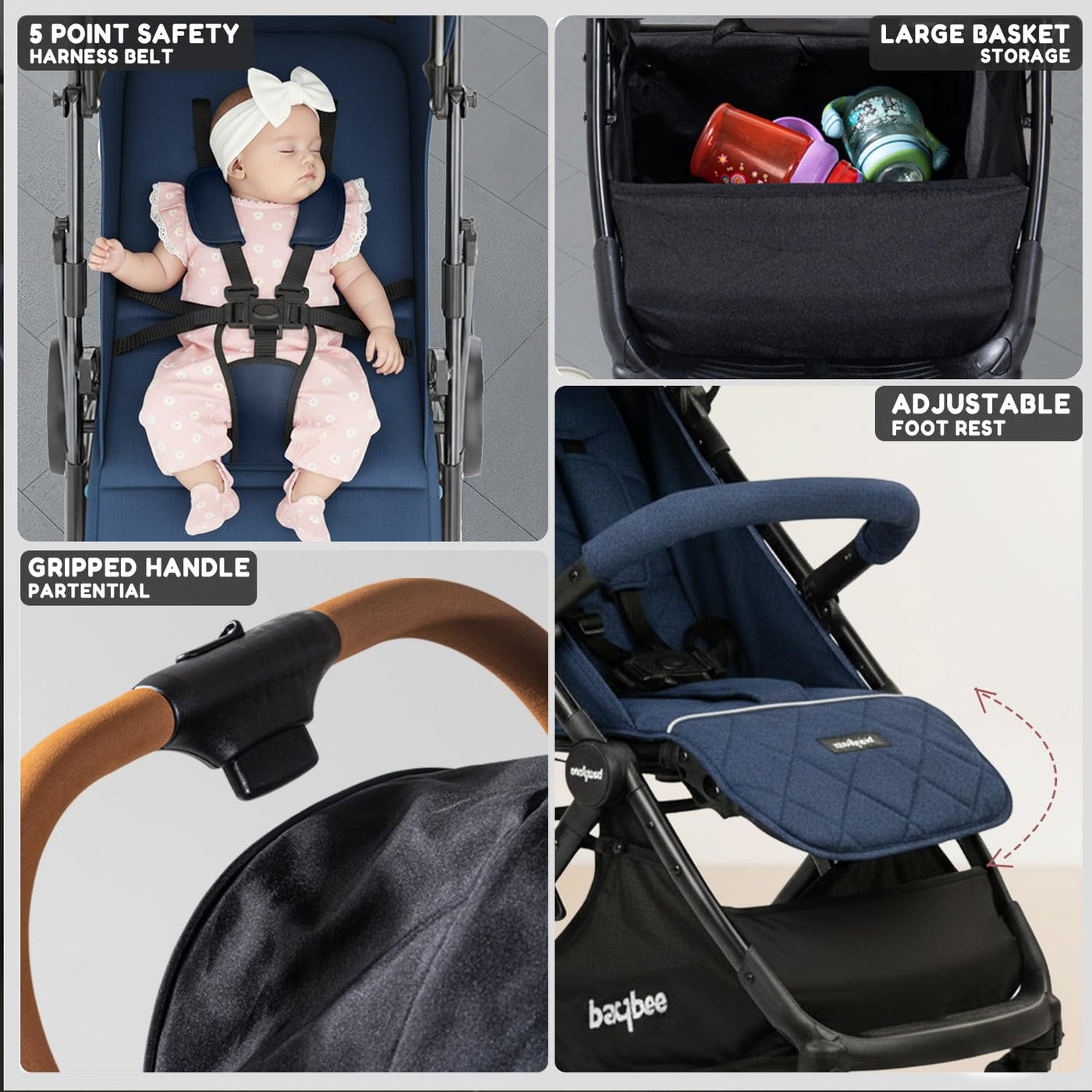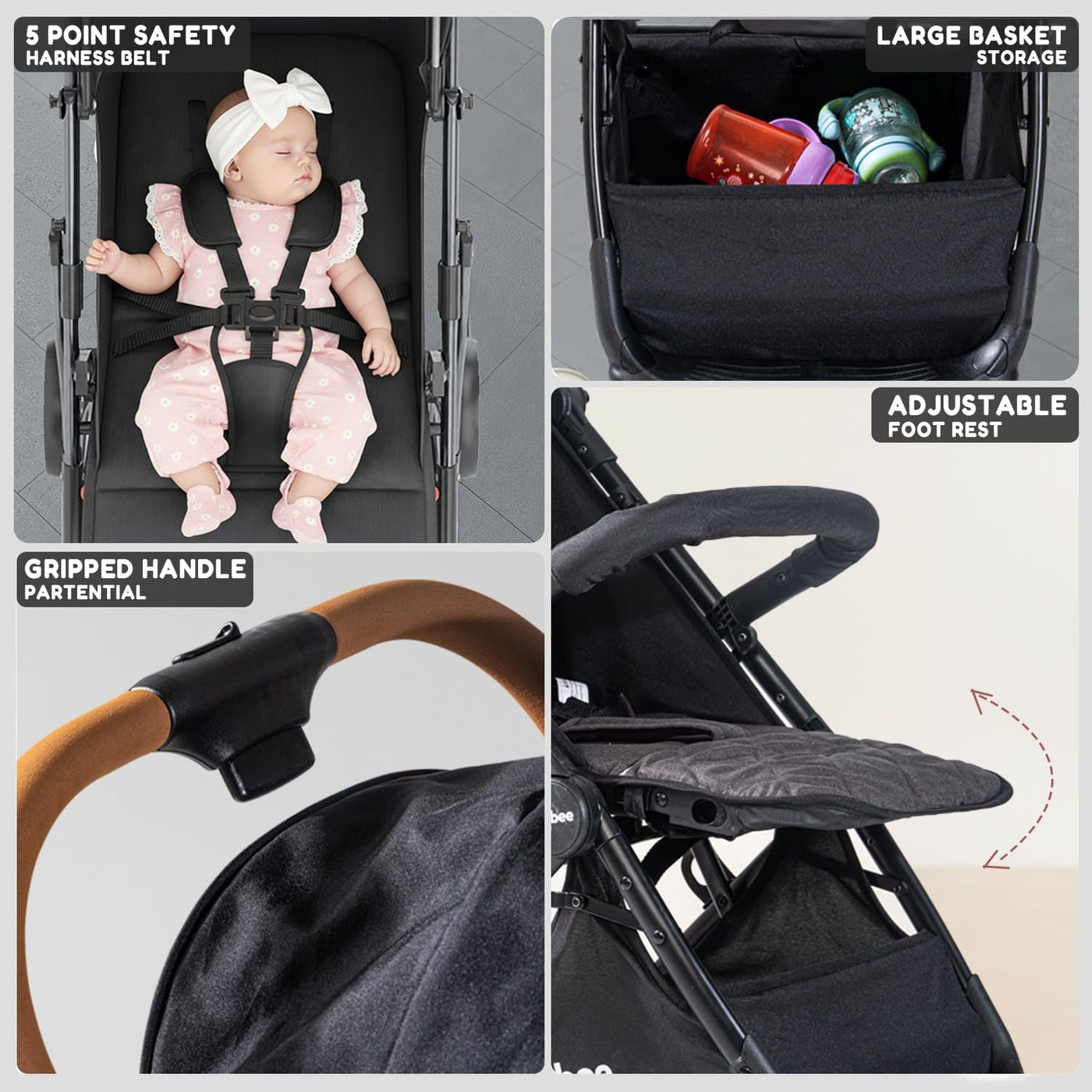 • Reversible Parent Handle: Baby stroller features a dual-direction seat—choose between parent-facing or forward-facing rides.