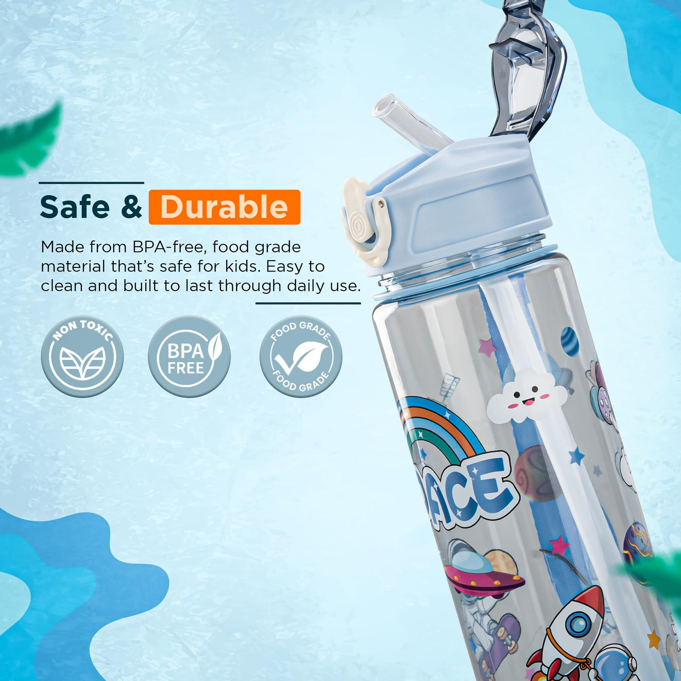 The Baybee baby sipper bottle for kids features both sipper & straw modes, ideal for toddlers learning to drink independently. Leak proof water bottle for kids with tight-seal lid prevents spills during travel or school use. Made from BPA-free, Non-toxic material, this sipper bottle for school kids ensures safe hydration daily. 550ml kids water bottle offers ample hydration for school, playdates & outings without frequent refills. Comes with a protective carry pouch and adjustable strap, perfect as a school water bottle for boys and girls. Fun cartoon print makes it the best sipper bottle for kids age 3+, encouraging regular water intake. Wide mouth and removable straw make this sipper water bottle for toddlers easy to wash and maintain hygiene. Trusted by Parents for 15+ Years, Baybee is India?s leading baby brand, delivering safe, innovative, and joyful products loved by lakhs of families