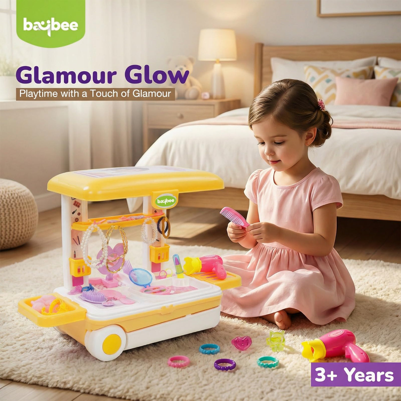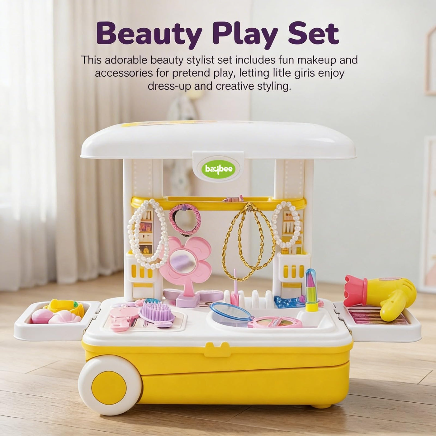 The Baybee Little Beauty Set is a delightful makeup set for kids designed to inspire creativity, imagination, and endless fun. Specially crafted for girls aged 3 years and above, this stylish beauty play set allows children to explore pretend salon play with realistic-looking accessories in a safe and child-friendly design.