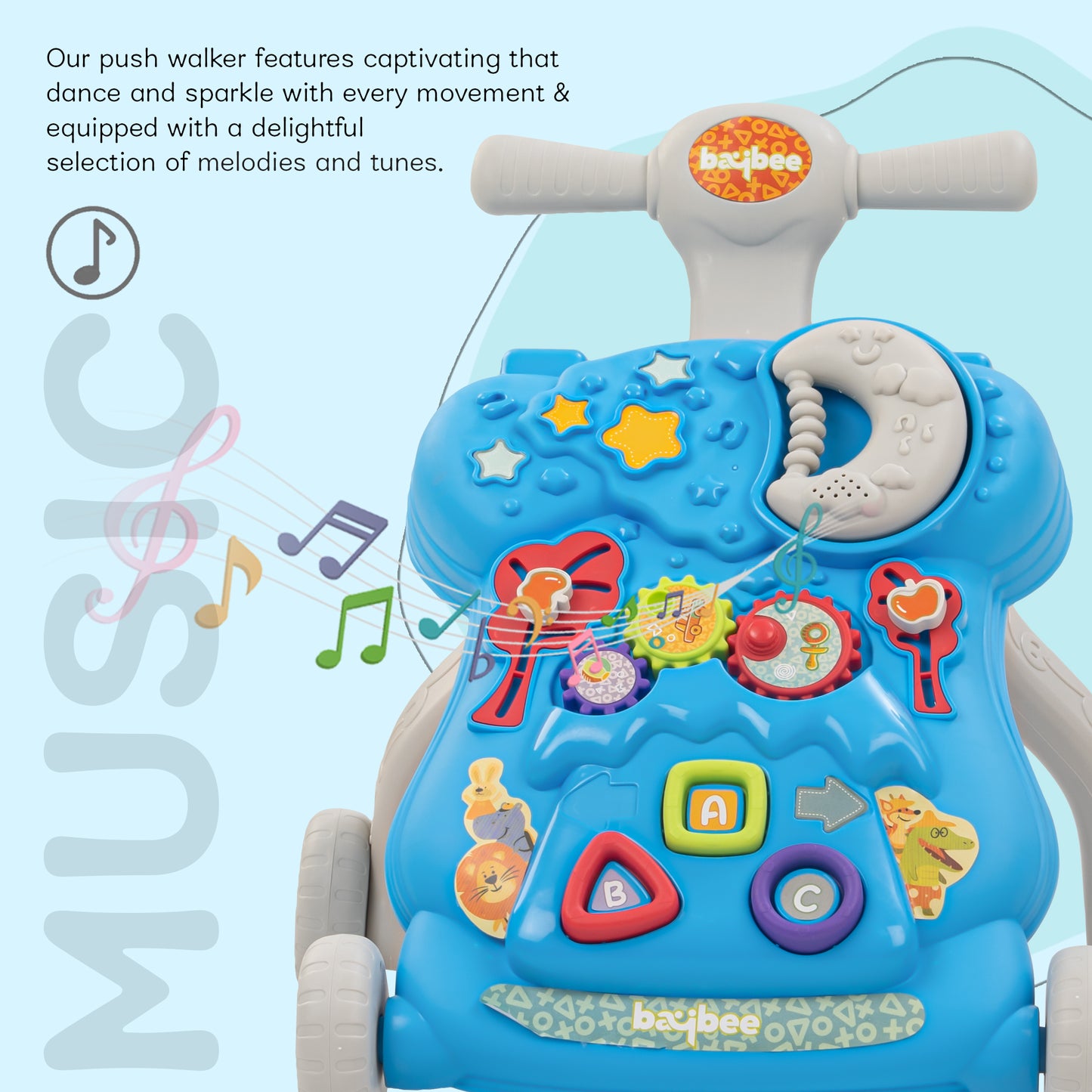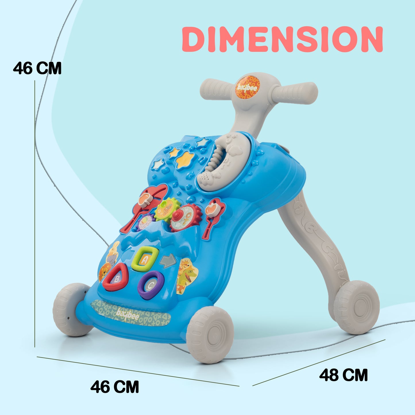 Delight your little one's every step with the Baybee Activity Walker, a vibrant fusion of fun and developmental stimulation. This colorful walker is a treasure trove of interactive features, boasting musical tunes and sparkling LED lights to captivate your child's attention. As they push along, rotating gears and an assortment of buttons introduce them to the joys of cause and effect, nurturing fine motor skills and cognitive development.