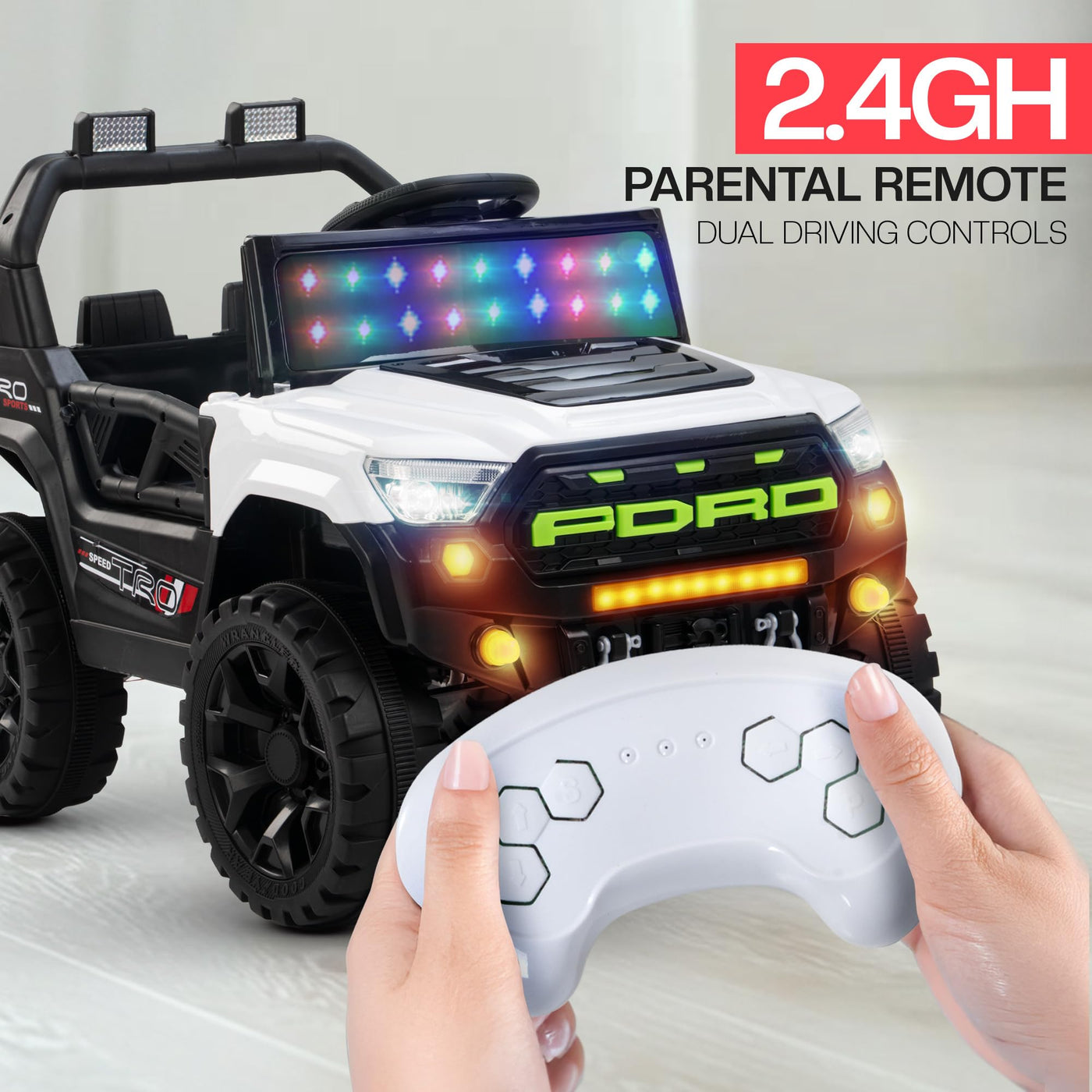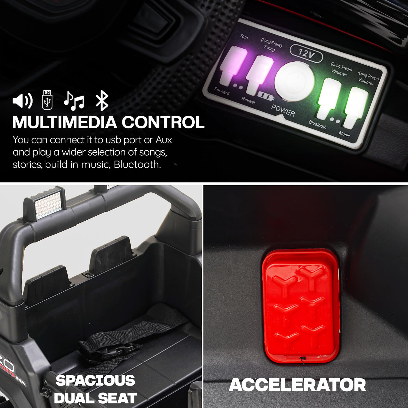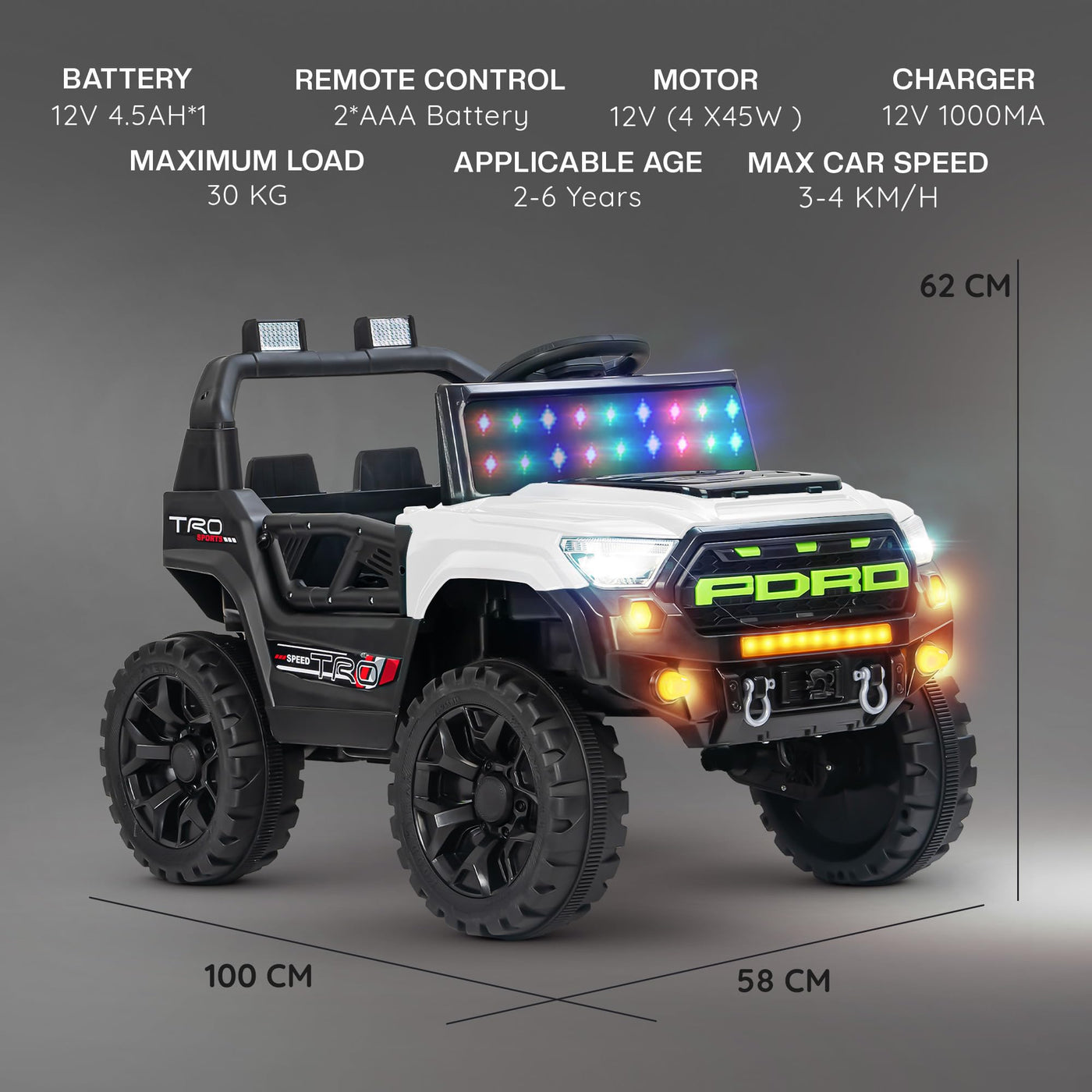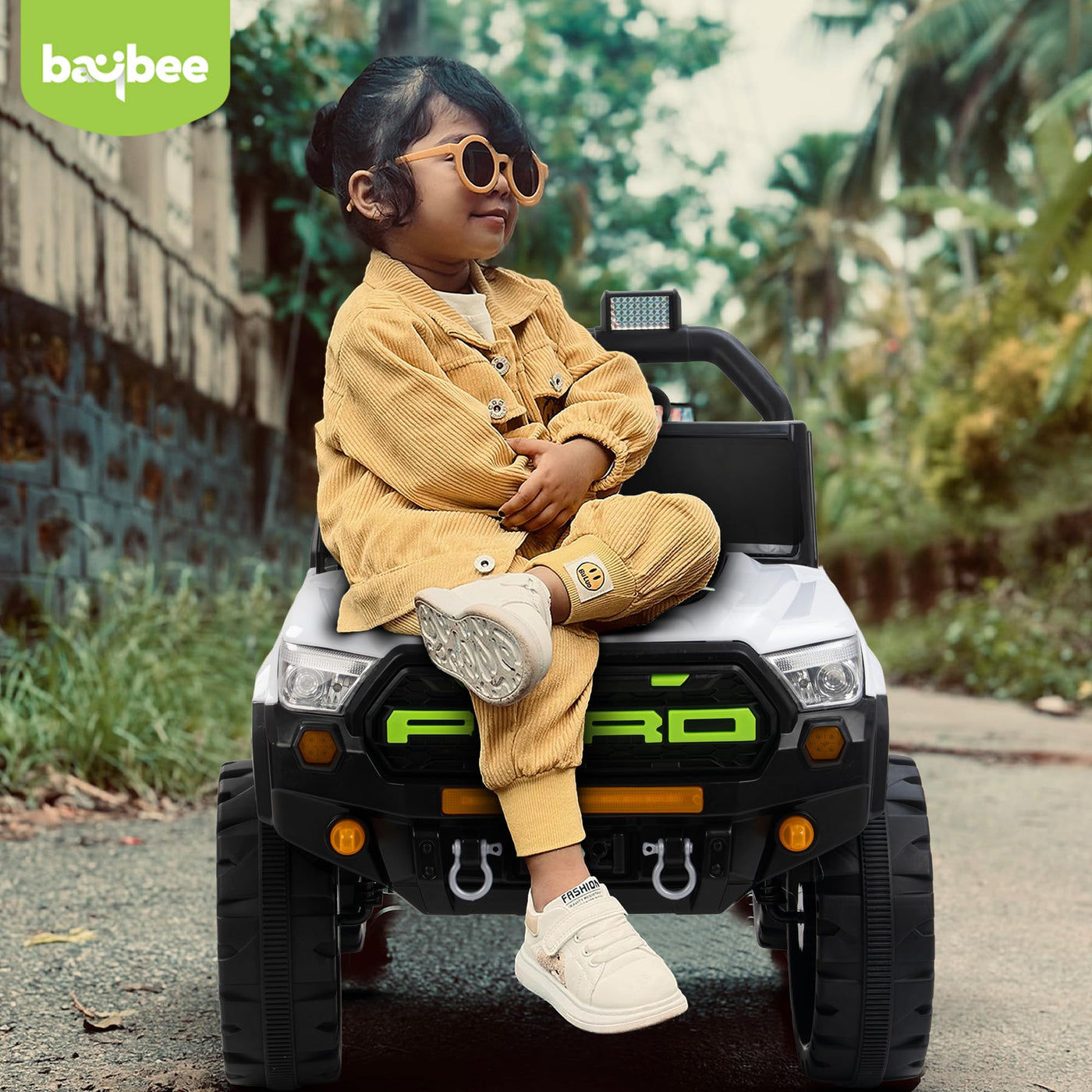 Introducing our Baybee Bronco Dual Mode Electric Car, an engaging and dynamic driving experience tailored for your youngsters. This battery-powered wonder offers two control options, granting parents control via a 2.4G wireless remote or enabling children to navigate independently, fostering hands-on coordination and confidence. With its lifelike design, the car features LED headlights, a horn, built-in music, Bluetooth, USB, and Aux connectivity, ensuring an authentic driving adventure. Crafted for durability and comfort, it boasts wear-resistant seats and four wheels equipped with suspension springs for a smooth journey. Safety is paramount, featuring a potent engine with a gradual start mechanism, bright LED lights for nighttime visibility, and a steering system engineered to prevent accidental overturning.