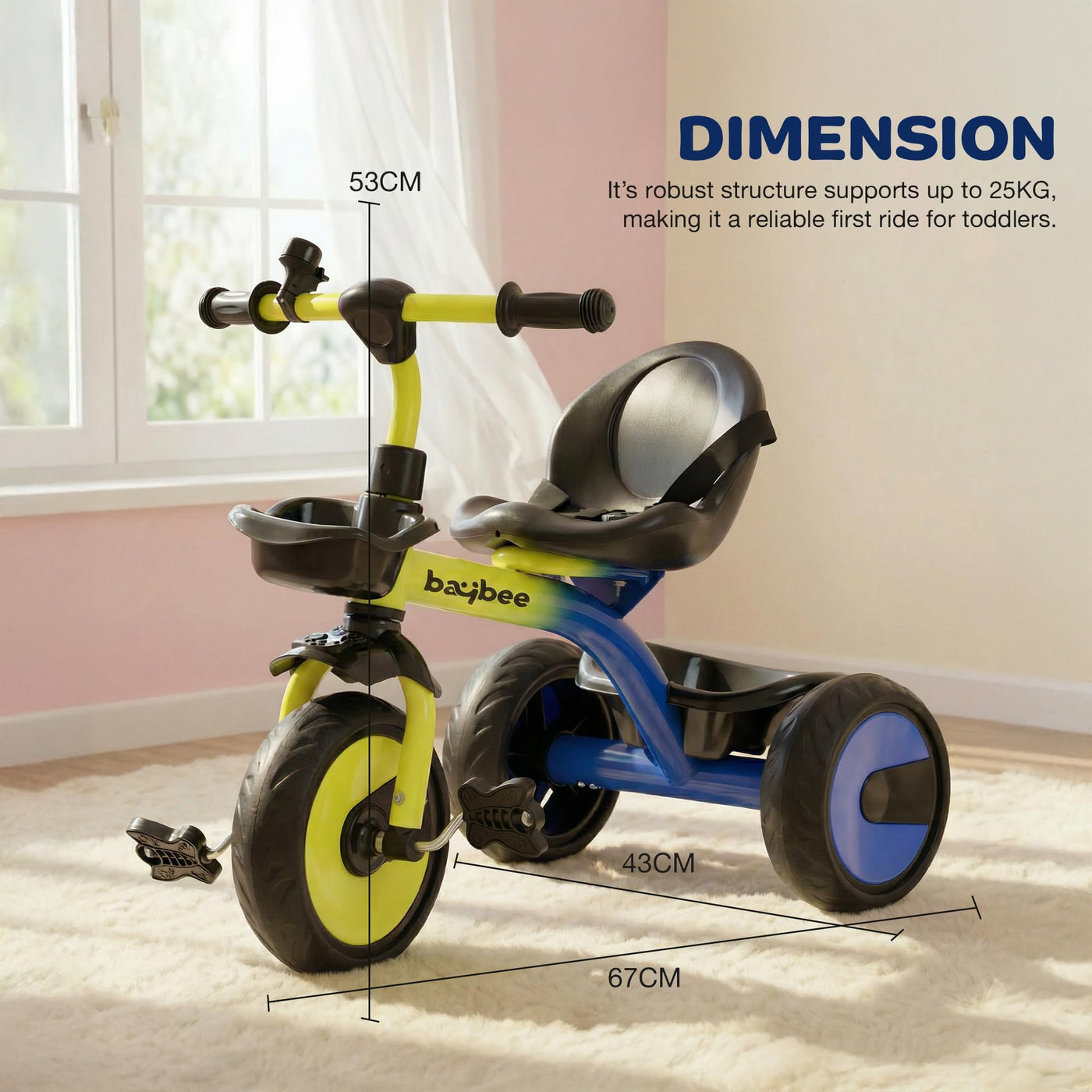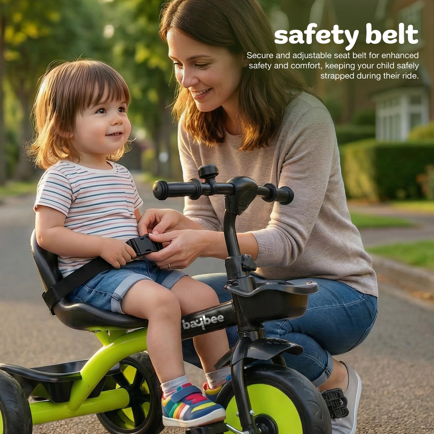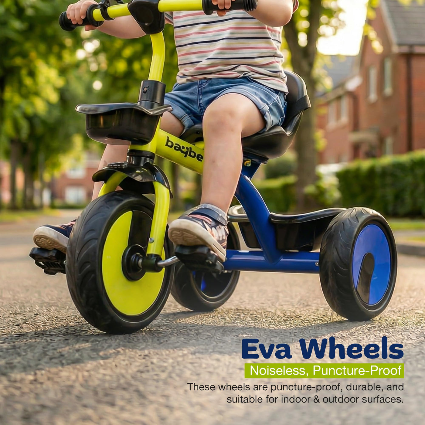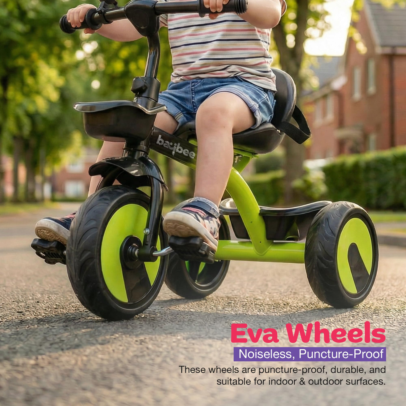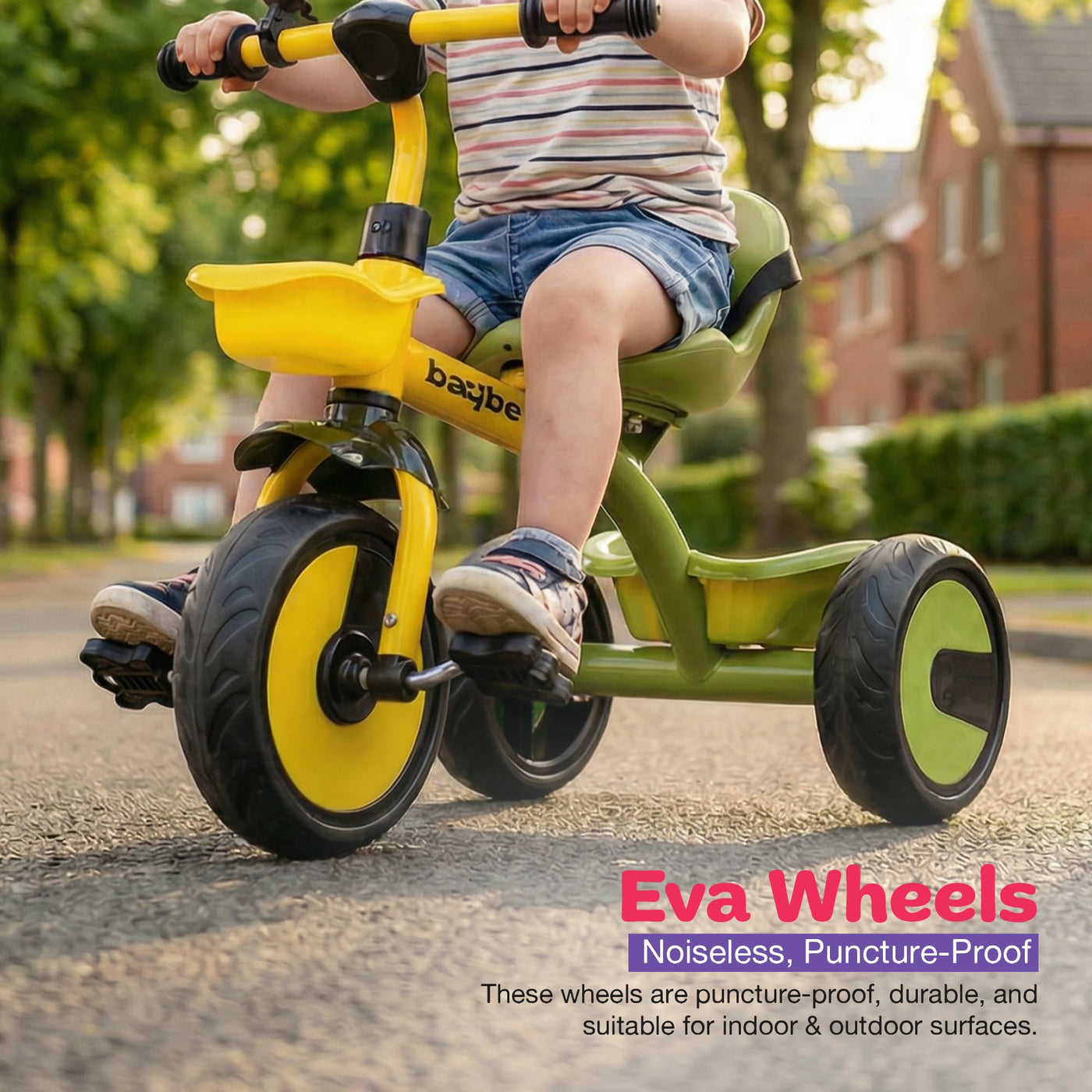 The Baybee Nova baby cycle is designed for toddlers aged 2 to 5 years, offering a stable and balanced kids cycle for boys and girls. Equipped with a safety belt and strong frame, this kids trike ensures a secure riding experience while helping children gain confidence and balance. Wide EVA wheels and stable tricycle structure provide smooth riding indoors and outdoors, making it an ideal kids cycle for beginners.