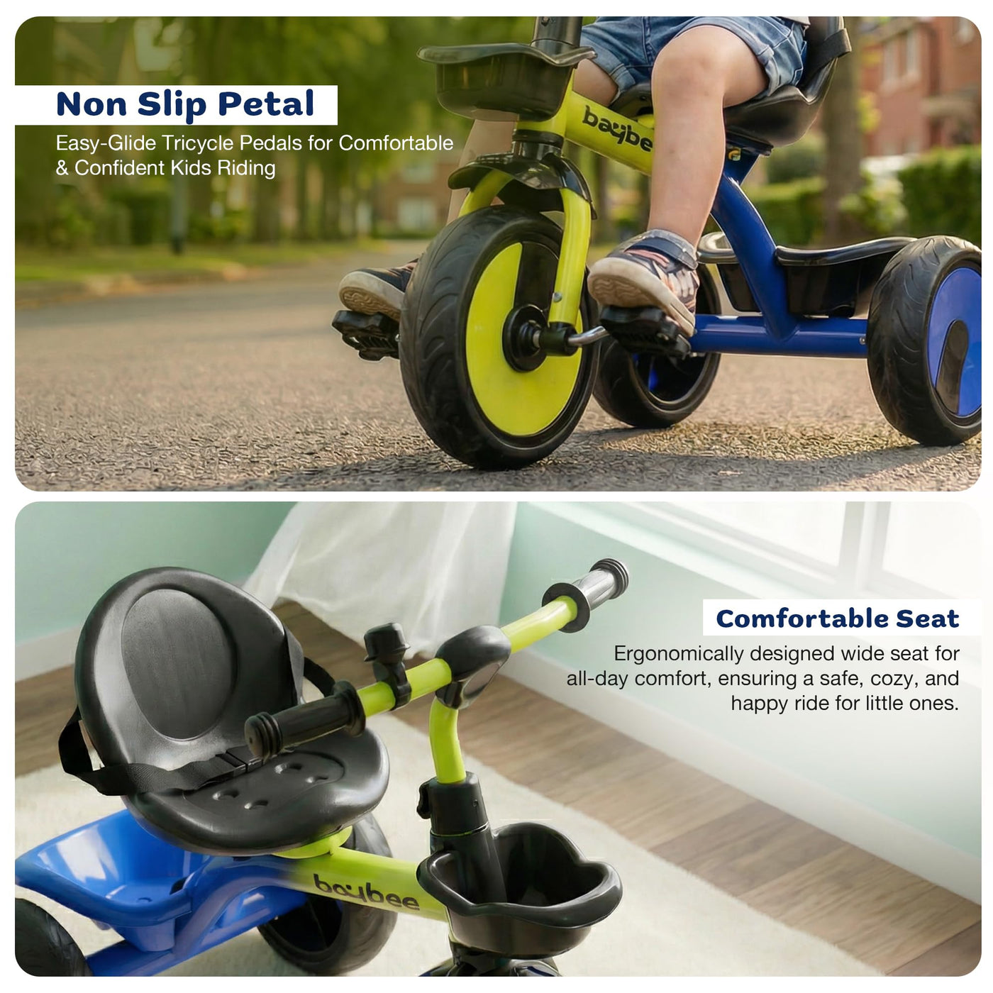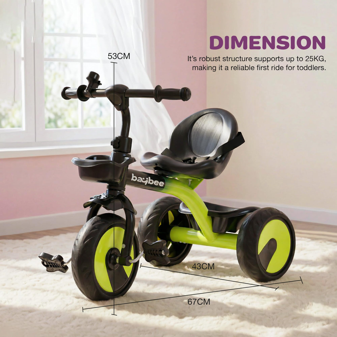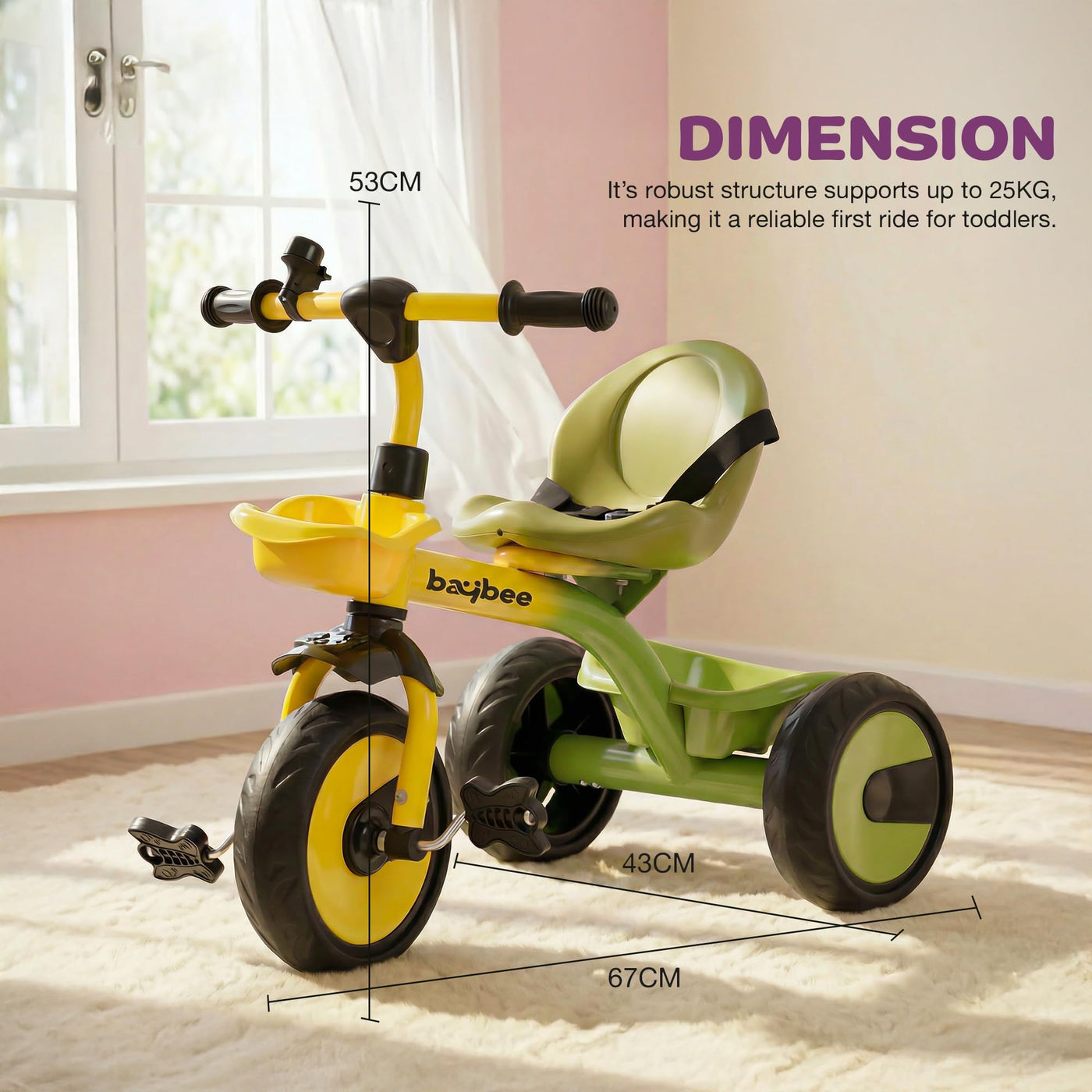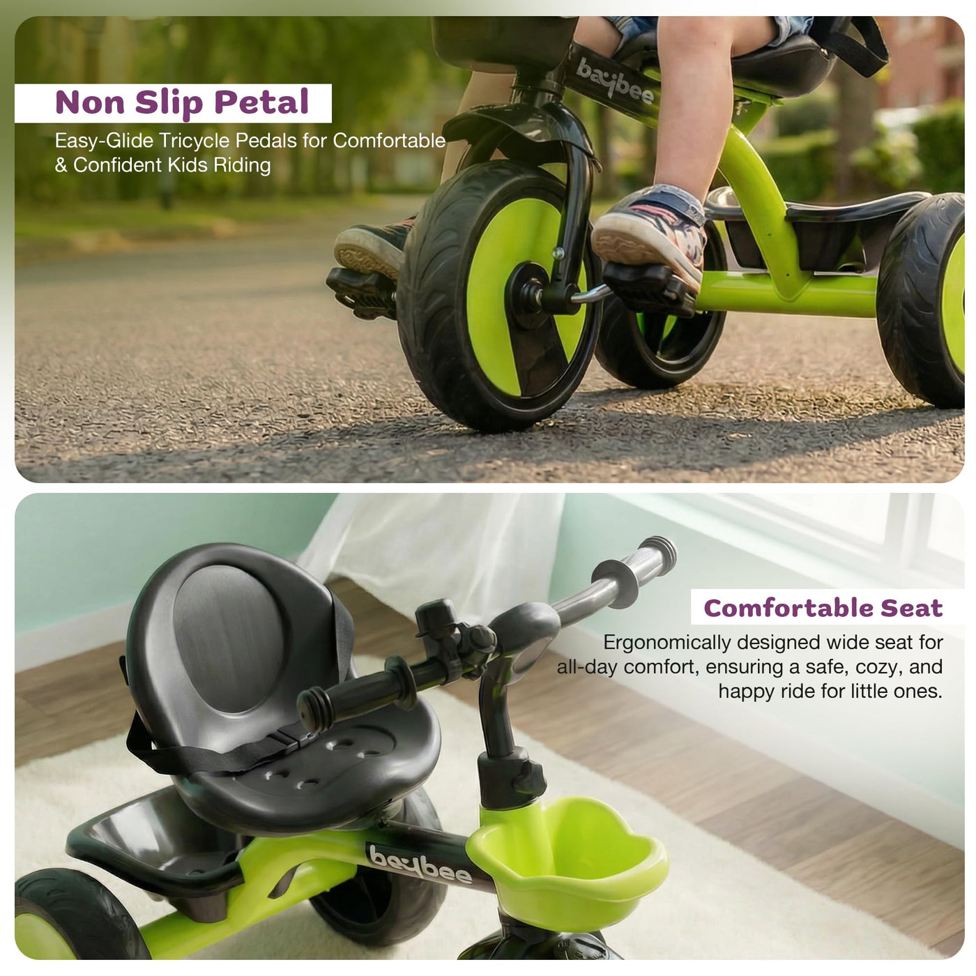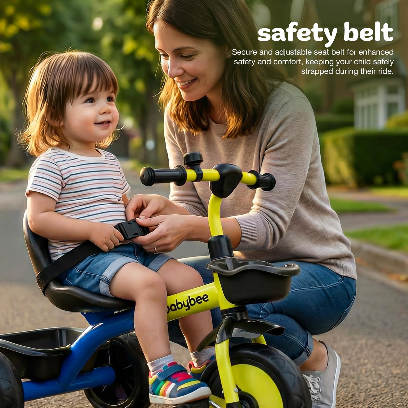 The Baybee Nova baby cycle is designed for toddlers aged 2 to 5 years, offering a stable and balanced kids cycle for boys and girls. Equipped with a safety belt and strong frame, this kids trike ensures a secure riding experience while helping children gain confidence and balance. Wide EVA wheels and stable tricycle structure provide smooth riding indoors and outdoors, making it an ideal kids cycle for beginners.
