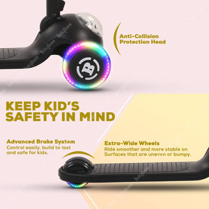 Lean-to-Steer technology and lightweight design offer better control turning and keep balance easily by your child's physical incline. The reinforced and fully enclosed rear-wheel foot brake is easy to stop the scooter quickly when treads.The 3 wheel scooter comes equipped with thicken non-slip deck, extra wide PU wheels and ABEC-7 bearings, make the children scooter glide stably, smoothly and quietly. Providing an extra level of safety on asphalt, concrete, cobblestone, and comfort so they can ride all day long.