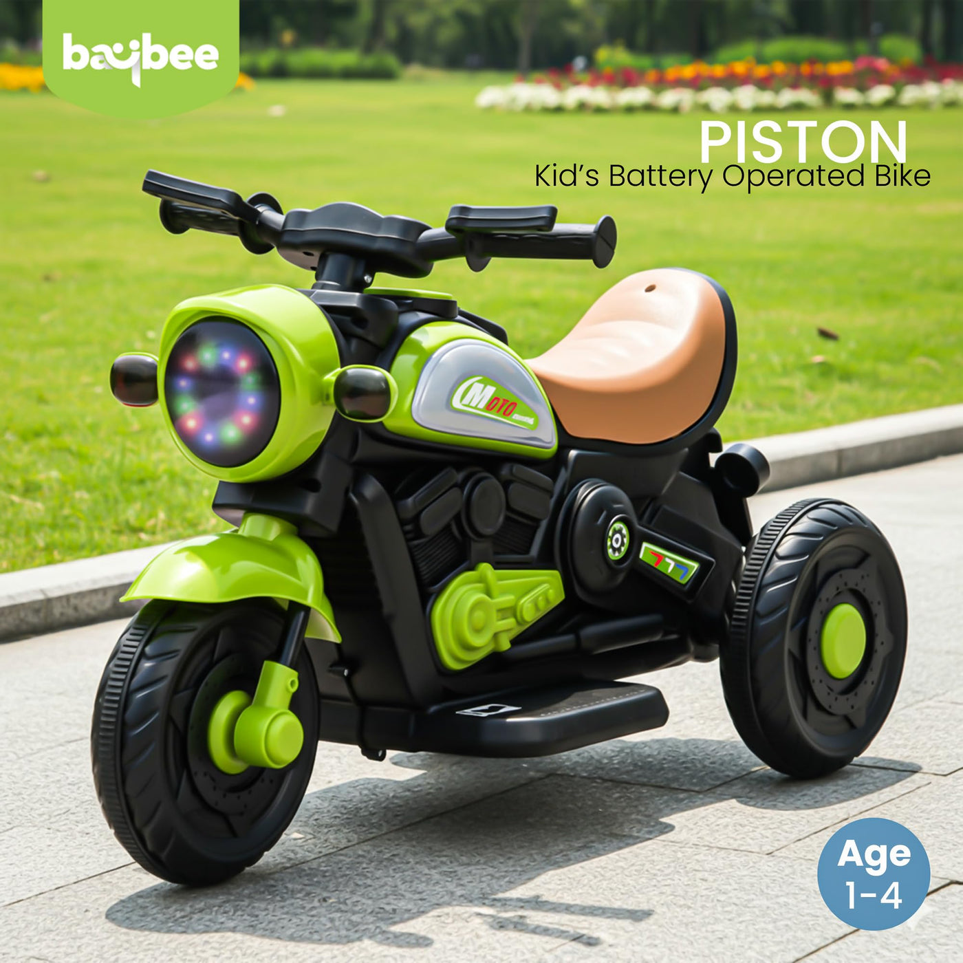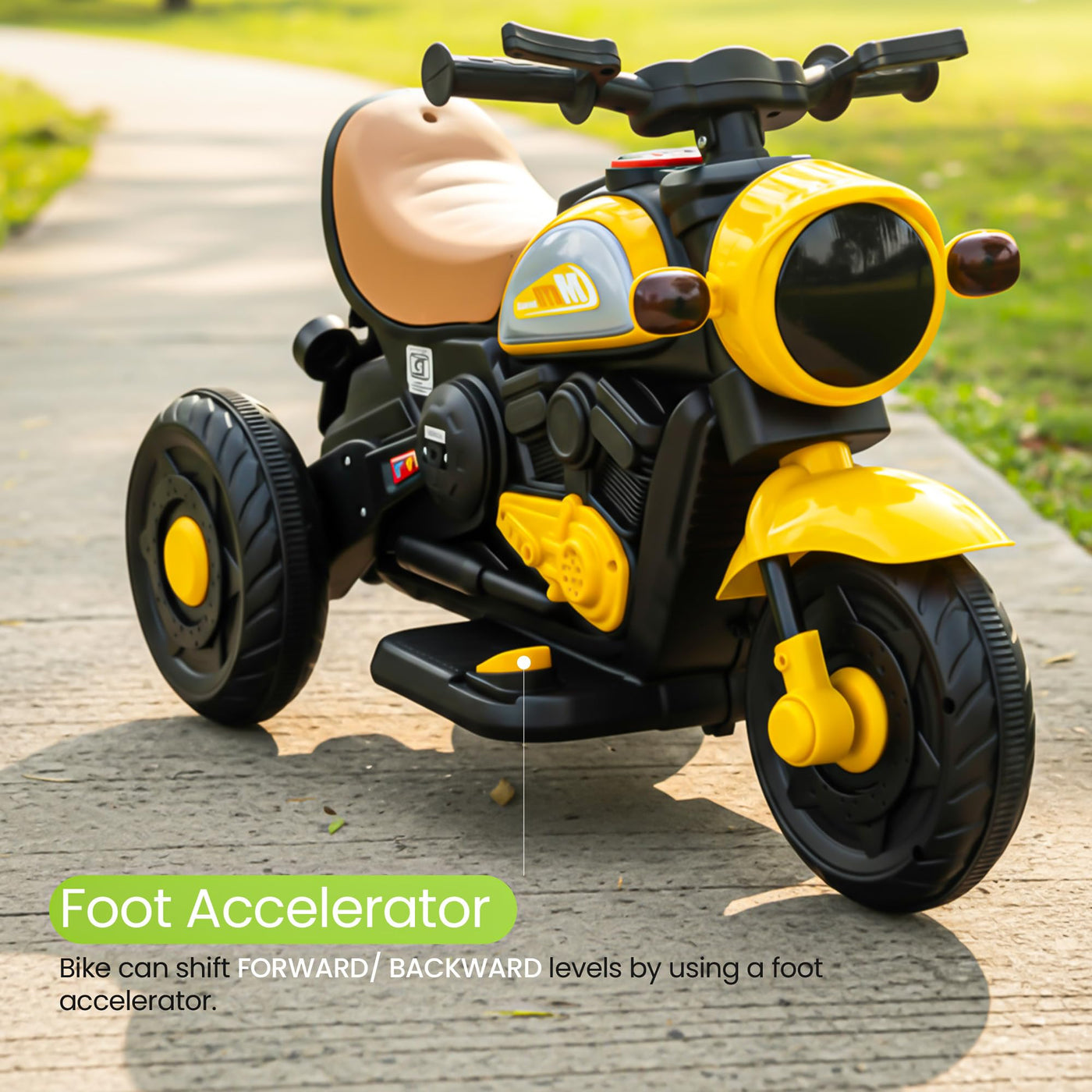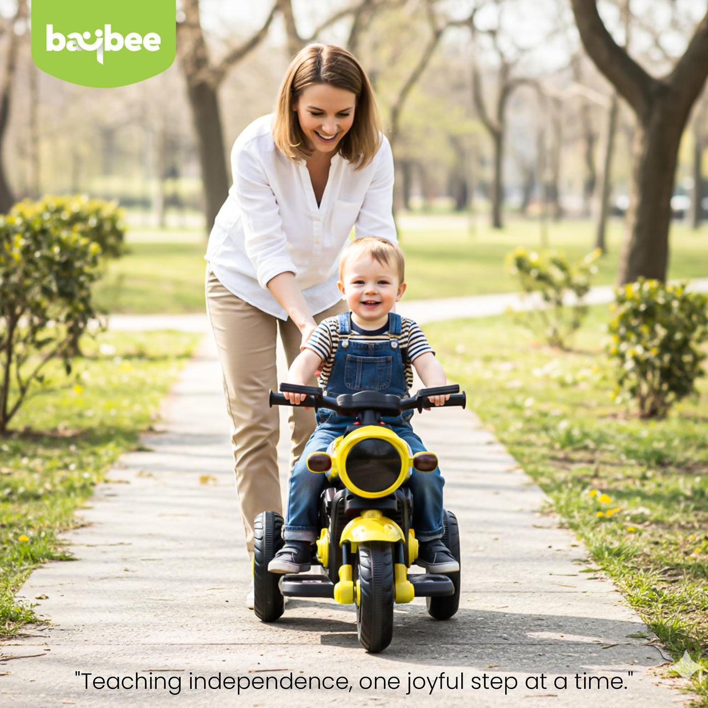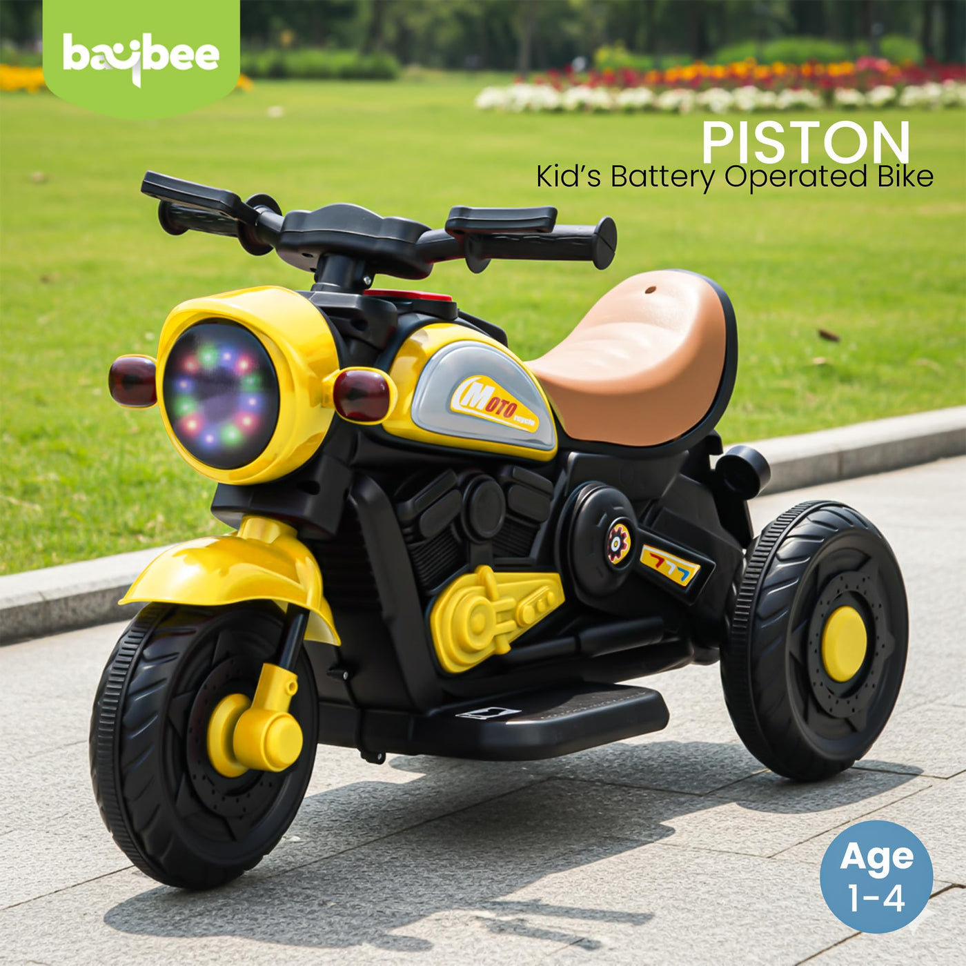 The Baybee Piston Baby Electric Bike for Kids is the ultimate combination of fun, safety, and style, designed to give little riders an exciting yet secure driving experience. Perfect for boys and girls aged 1 to 5 years, this battery-operated ride on toy bike is powered by a strong rechargeable battery that ensures hours of uninterrupted play, making it one of the most reliable kids electric bikes available. With a bold yellow finish, realistic motorbike styling, and durable design, the Piston stands out as a premium choice for parents who want to give their kids a thrilling ride while ensuring complete safety. Built with a cushioned wide seat and ergonomic design, it offers superior comfort for toddlers and young children, while sturdy side support wheels provide balance, making it ideal even for first-time riders.