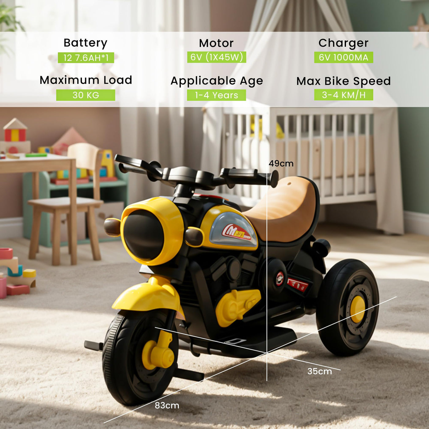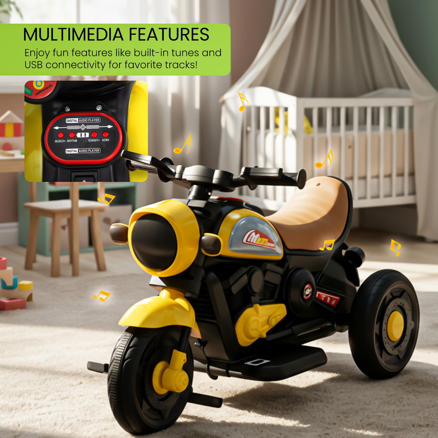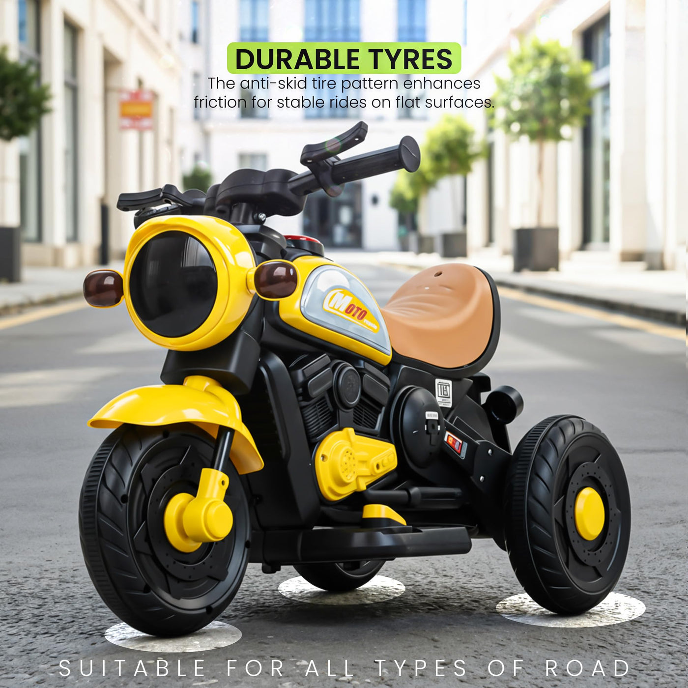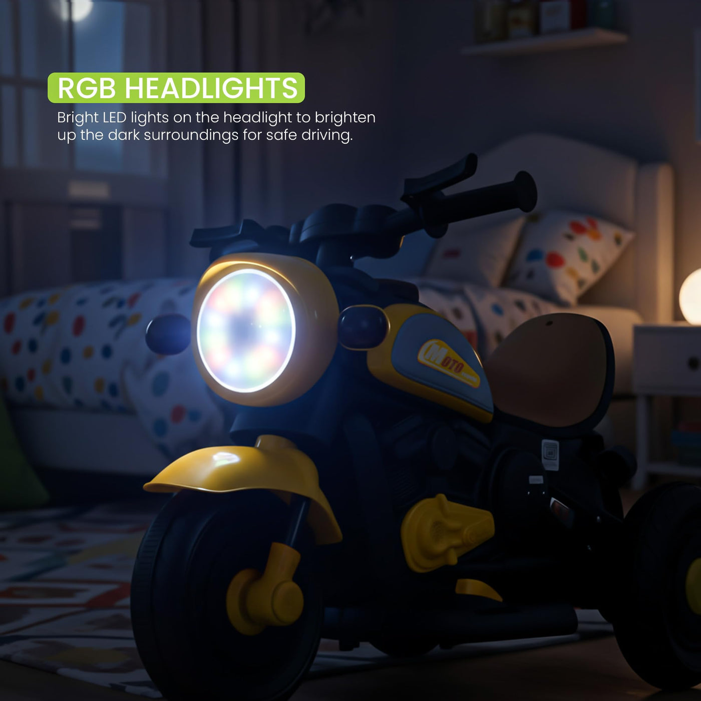 The Baybee Piston Baby Electric Bike for Kids is the ultimate combination of fun, safety, and style, designed to give little riders an exciting yet secure driving experience. Perfect for boys and girls aged 1 to 5 years, this battery-operated ride on toy bike is powered by a strong rechargeable battery that ensures hours of uninterrupted play, making it one of the most reliable kids electric bikes available. With a bold yellow finish, realistic motorbike styling, and durable design, the Piston stands out as a premium choice for parents who want to give their kids a thrilling ride while ensuring complete safety. Built with a cushioned wide seat and ergonomic design, it offers superior comfort for toddlers and young children, while sturdy side support wheels provide balance, making it ideal even for first-time riders.