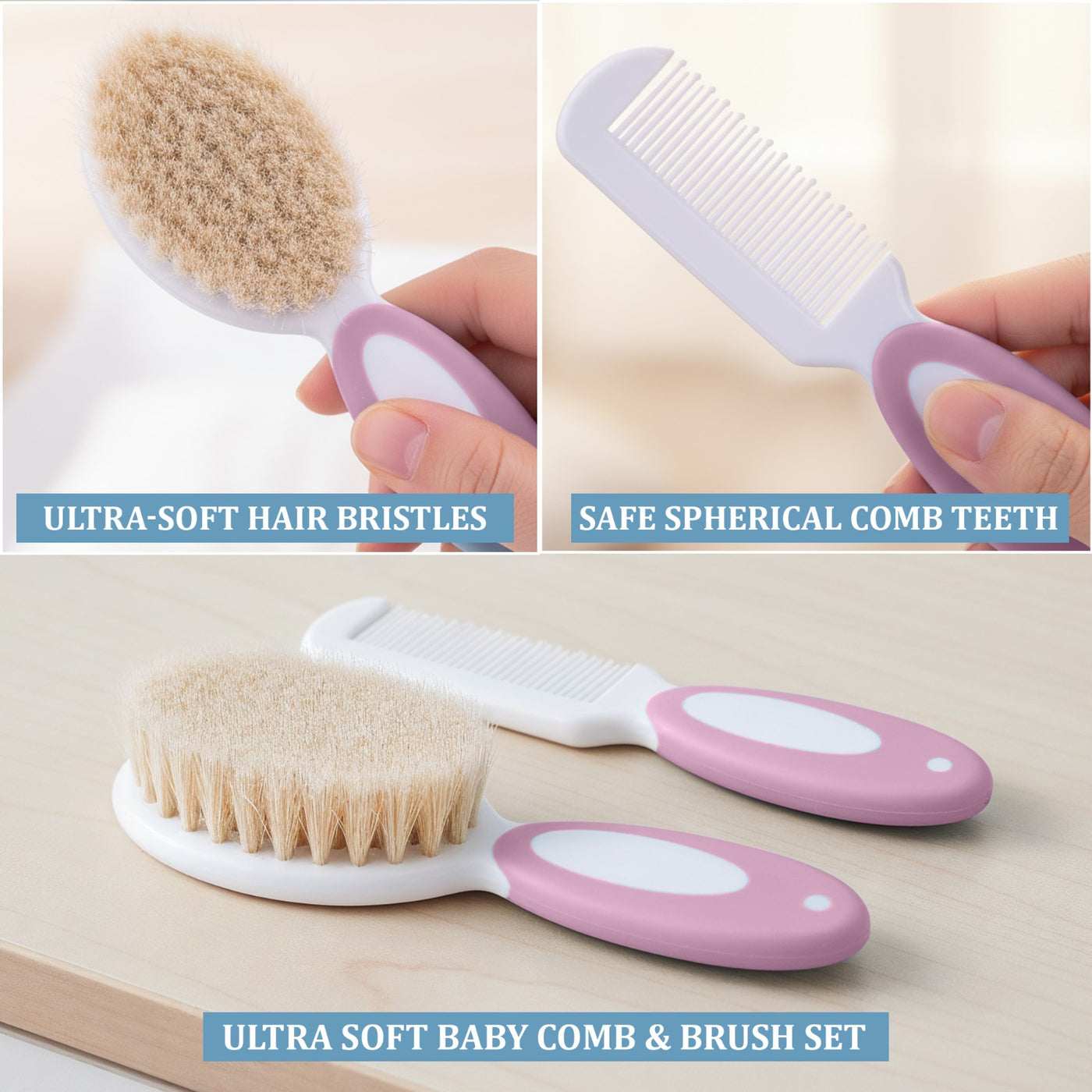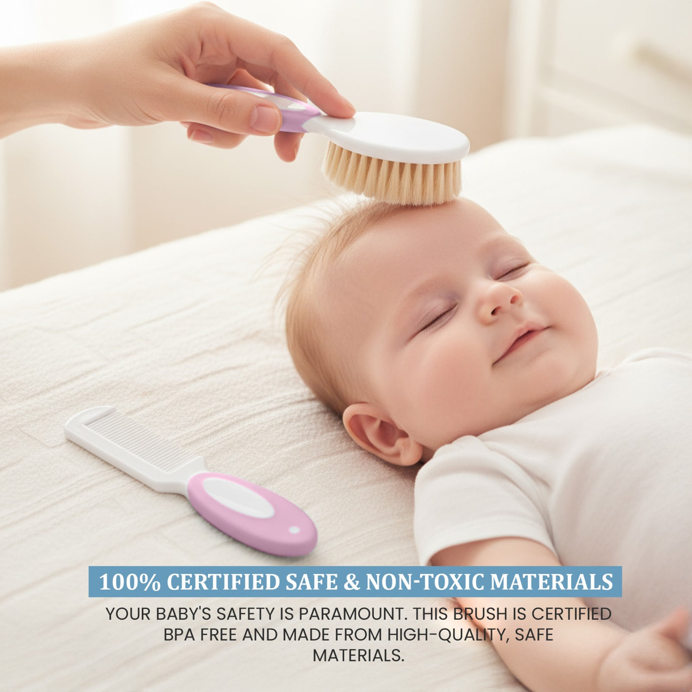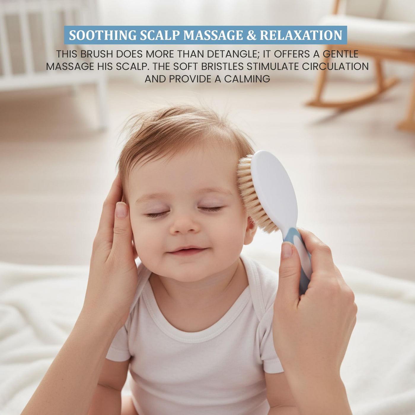The brush and comb allow you to gently comb the baby's hair. The soft natural bristles of brush and comb teeth with rounded ends are ideal for baby`s delicate scalp. It has large handles that allow easy and safe grip.
