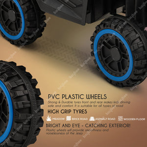 The Baybee Roar Batery operated jeep can be controlled by dual control modes. Parent can help your children control this jeep with 2.4G wireless remote controller or baby can operate this car by himself/herself by step on the accelerator, turn the steering wheel and shift the forward/backward moving mode, your kids will practice hand-eye-foot coordination, enhance courage, and build confidence through this wonderful vehicle. Battery Jeep gives your kids realistic driving experience just like a real Jeep with a horn, led Headlights, inbuilt music, Bluetooth, USB, Aux & remote controller, You can connect it to Bluetooth, USB port or Aux and play a wider selection of songs and stories. The buttons near the USB port are music modes, horn, bluetooth button & volume Control. This electric ride on car features two wear-resistant seats that can feel comfortably for your kids. The four wear resistant wheels equipped with suspension spring inside to provide your kids with smooth driving feeling. Powerful engine with a slow start for safer use. The bright LED lights on the front of this car allow for safe night-time driving. The steering wheel can only slightly change the direction of the car, which helps prevent accidental overturning. When this ride on car is fully charged, your baby can continuously play it for 40 minutes which makes sure that your baby can abundantly enjoy it. The jeep is suitable for kids 2 to 6 years boys girls. The product requires easy self-assembling. Instruction manual provided with the package and comes with a charger, NOTE: THE BATTERY POSITIVE TERMINAL (RED WIRE) IS DISCONNECTED SO WHILE ASSEMBLING THE JEEP CONNECT THE RED WIRE TO BATTERY BEFORE CHARGING