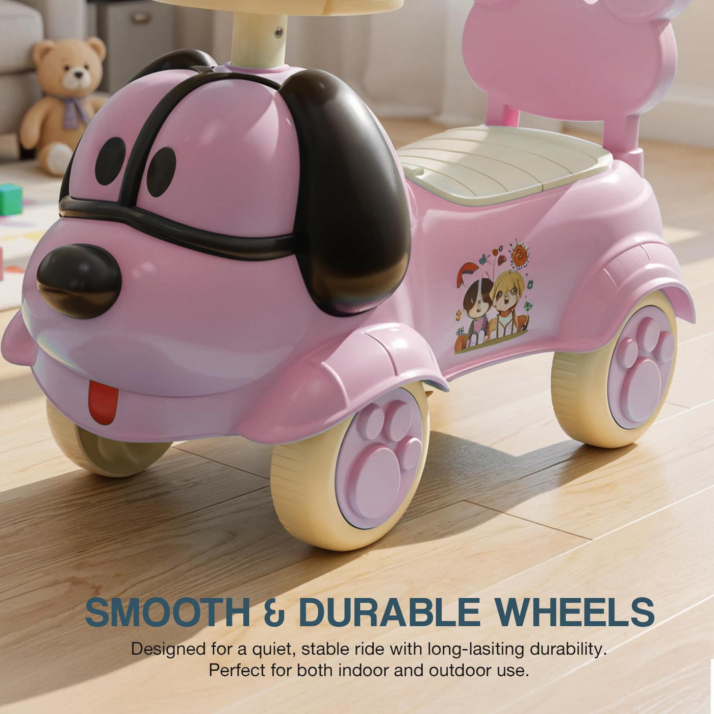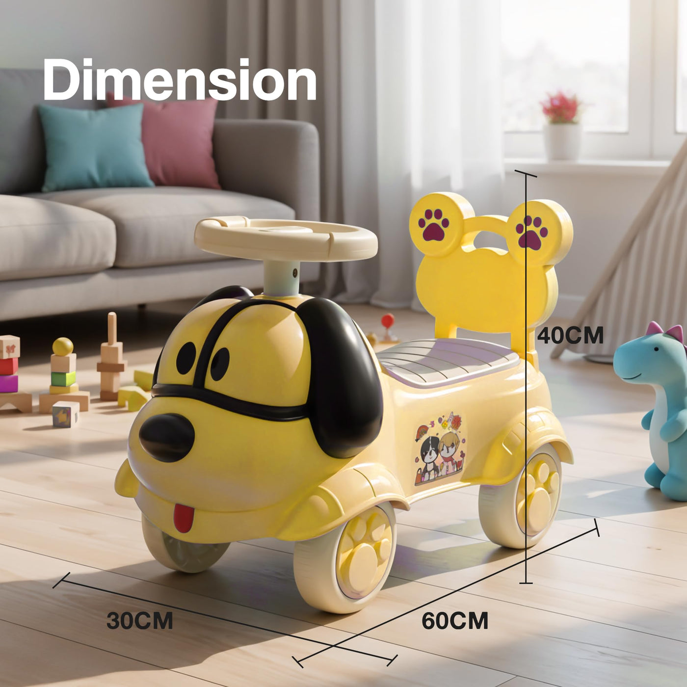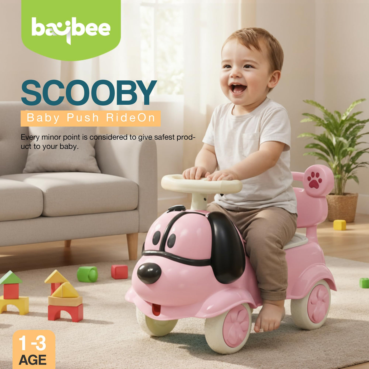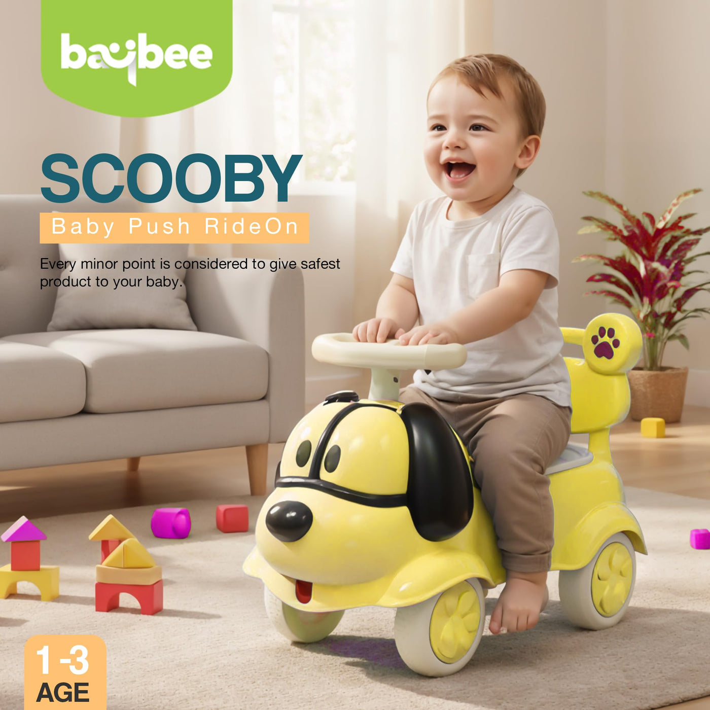 The Baybee Scooby Ride-on Car is a fun and safe toy designed for kids aged 1 to 3 years, making it the perfect ride for both indoor and outdoor adventures. Equipped with glowing head lights, it stands out with its amazing look, adding excitement and enhancing the playtime experience. The smooth and durable wheels ensure a quiet, stable ride, providing long-lasting durability for endless enjoyment.
