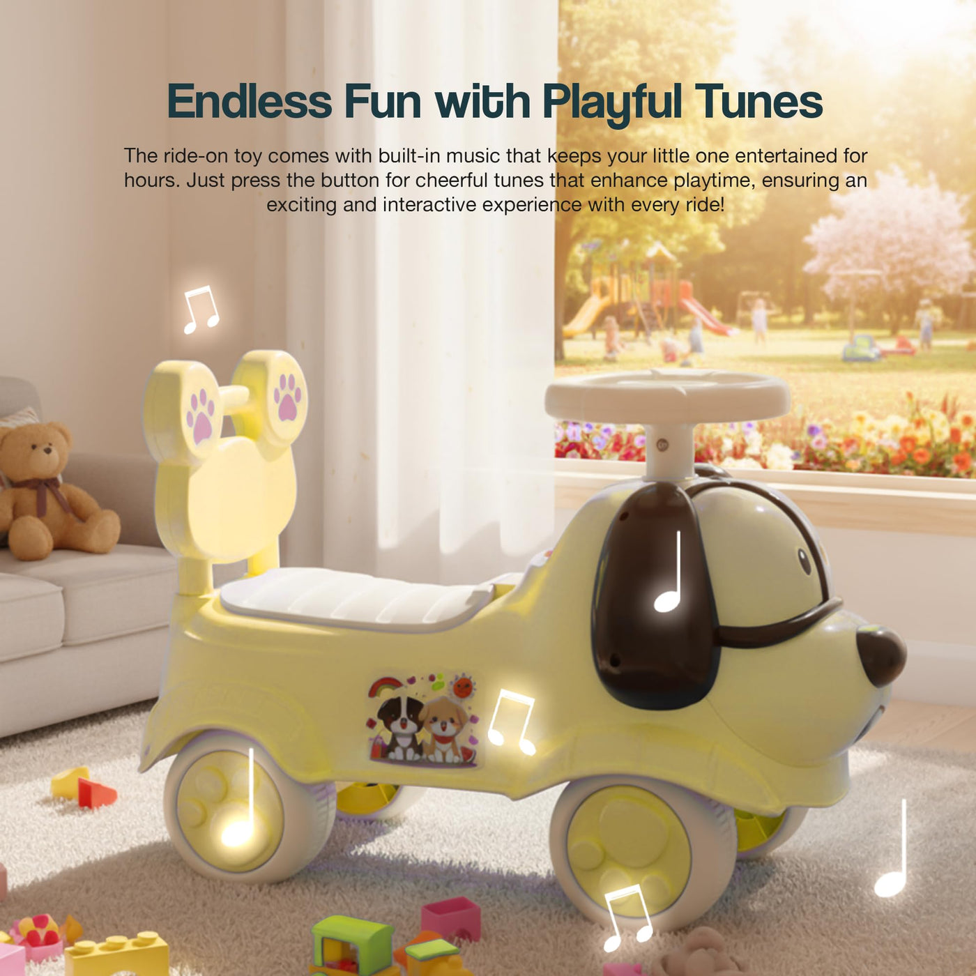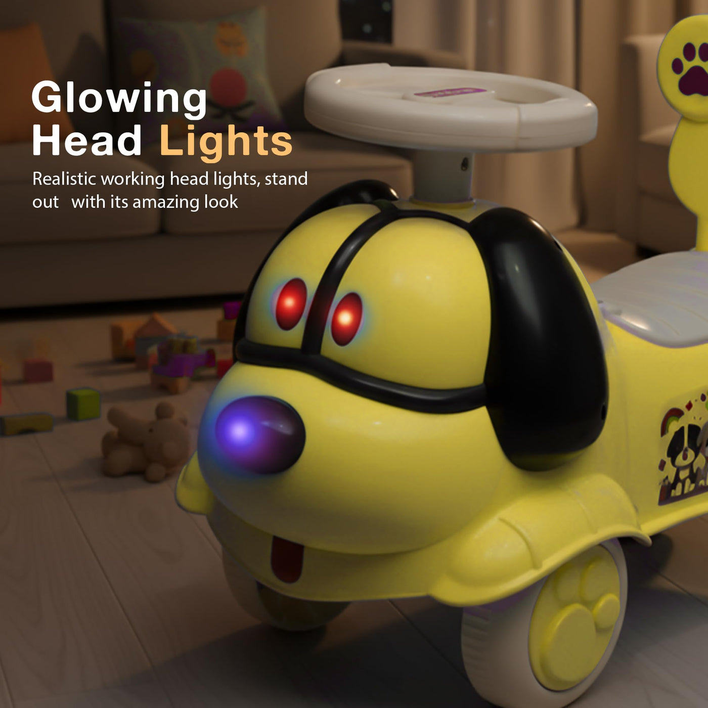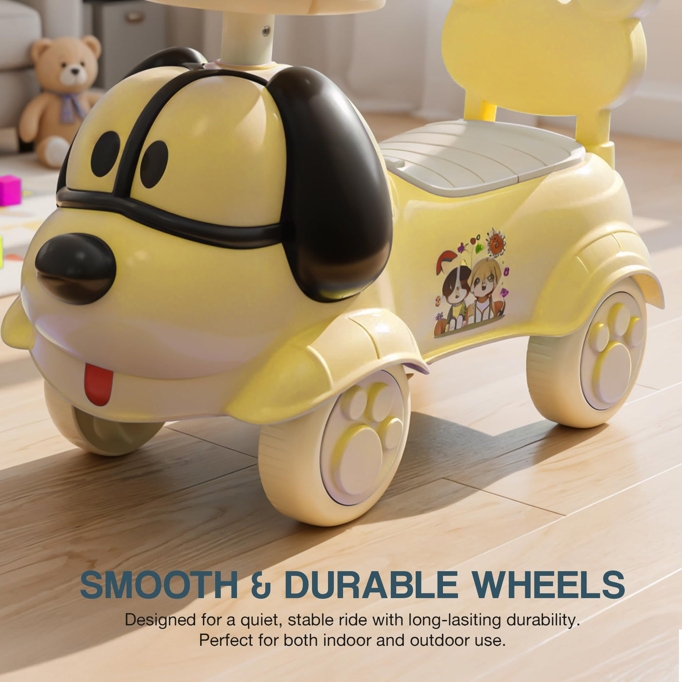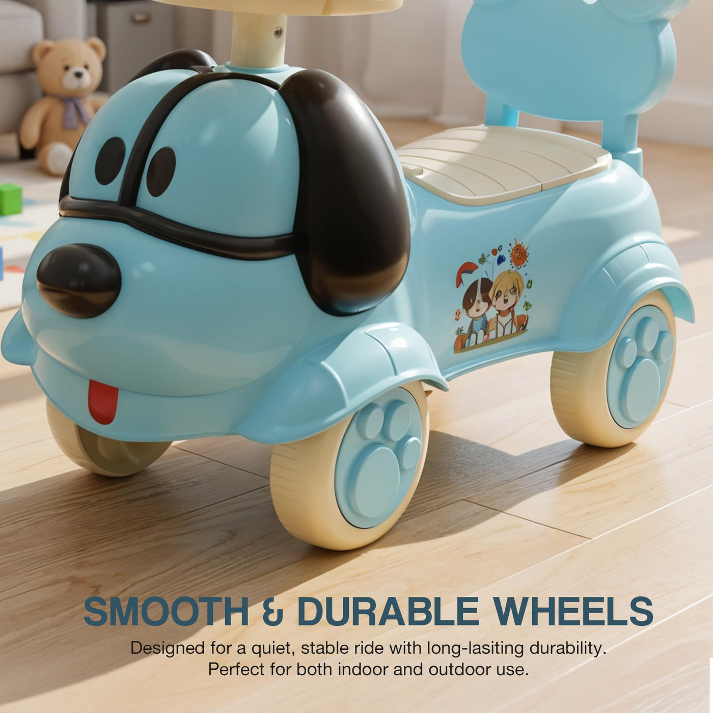 The Baybee Scooby Ride-on Car is a fun and safe toy designed for kids aged 1 to 3 years, making it the perfect ride for both indoor and outdoor adventures. Equipped with glowing head lights, it stands out with its amazing look, adding excitement and enhancing the playtime experience. The smooth and durable wheels ensure a quiet, stable ride, providing long-lasting durability for endless enjoyment.