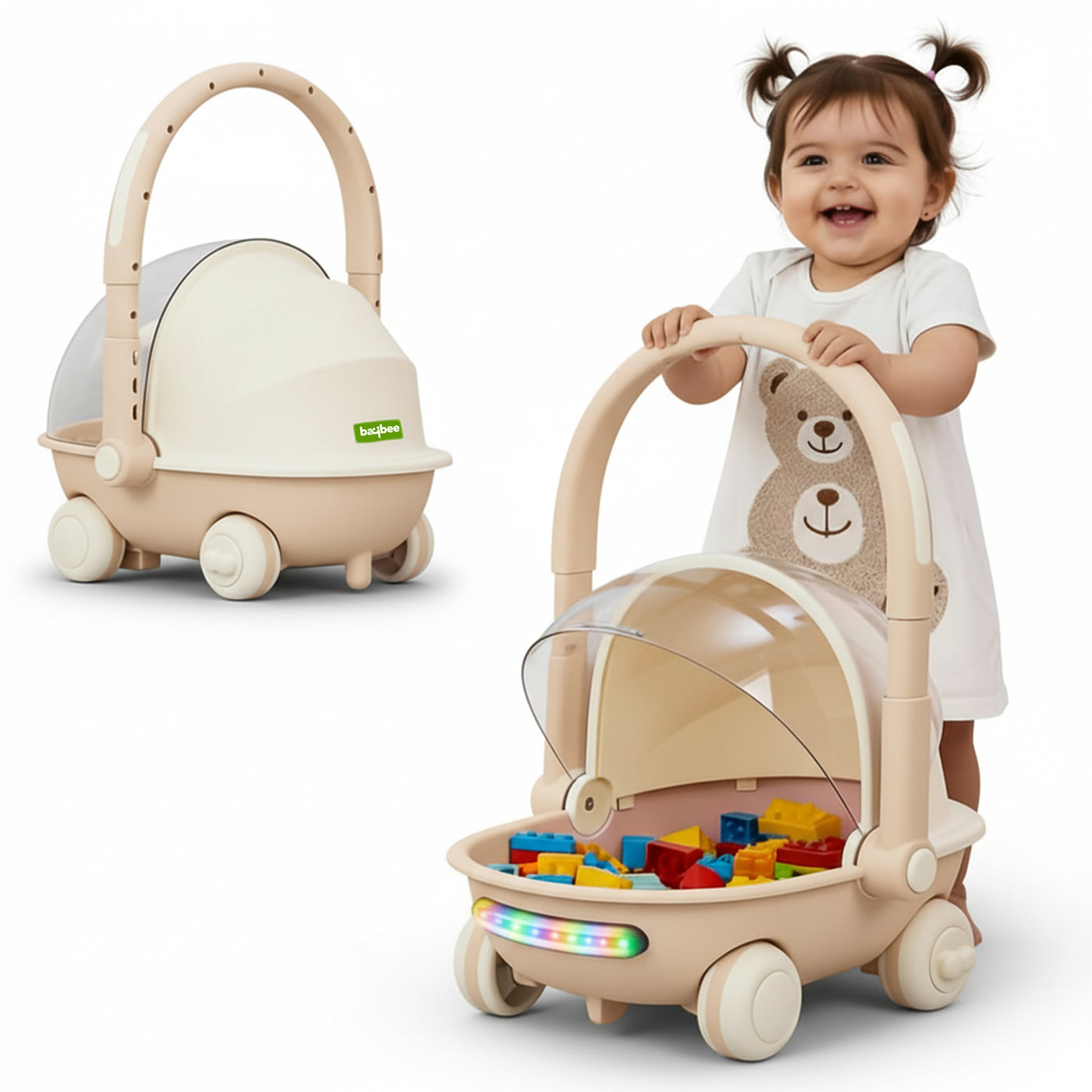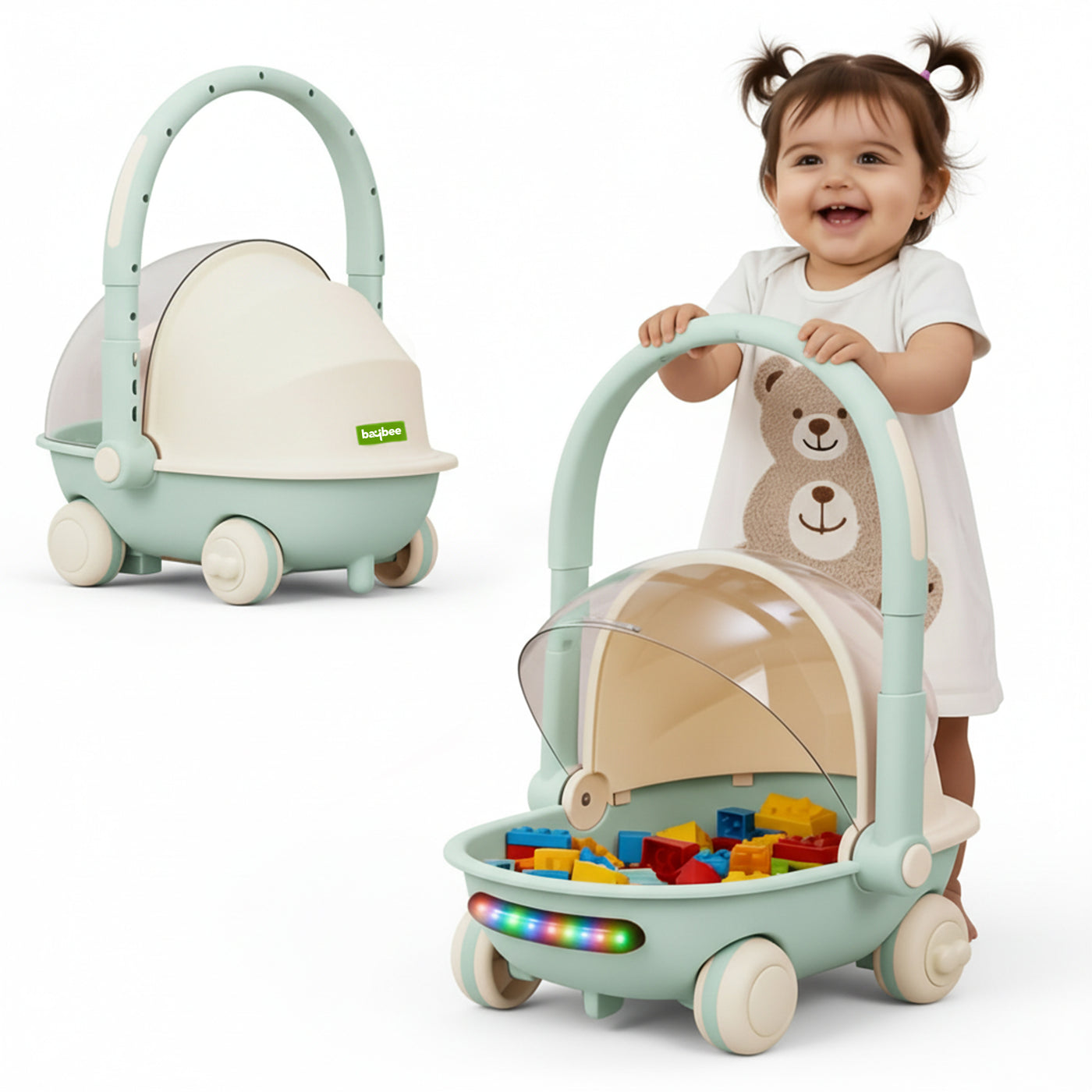 Make playtime more exciting, active, and development-focused with the Baybee Kids Shopping Cart Toy with Push Walker a thoughtfully designed multi-functional toy that supports early walking, learning, and imaginative role play. Inspired by real shopping carts, this storage cart toy for kids 6+ months features a spacious basket that easily holds toys, clothes, books, and everyday essentials, as shown in the images. It encourages children to organise their belongings while enjoying pretend shopping and role-play activities.