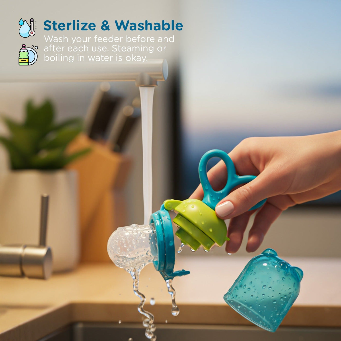 Introducing the perfect baby feeder and fruit feeder for babies 6-12 months, designed to help your little one enjoy fresh fruits and soft foods safely. This baby fruit nibbler encourages independent feeding while soothing tender gums, combining the benefits of a pacifier for 6 to 12 months and a reliable baby feeding product. Made from 100% food-grade silicone, it?s safe, hygienic, and gentle, serving also as a baby pacifier and nipple for baby. Ideal for soothing and teething, it works as a baby food masher and a soft teether for baby, suitable for babies transitioning from pacifier 0-6 months to teethers for 3 to 6 months and teethers for 6 to 12 months. The lightweight, ergonomic design is easy for babies to hold, making self-feeding fun and mess-free. It?s sterilizable and reusable, a practical addition to any feeding set for baby 6 to 12 months.This multifunctional product supports developmental needs across stages ? from a baby teether 0-6 months to a teether for 12 to 24 months baby, and even aligns with natural remedies like Tilismi teething moti. Perfect as a pacifier for 18 to 24 months, it complements other baby accessories and silicone toys for baby 6-12 month olds. Whether used as a baby fruit feeder, teething toy for babies, or baby teether, it?s a must-have for happy, healthy babies and satisfied parents alike.