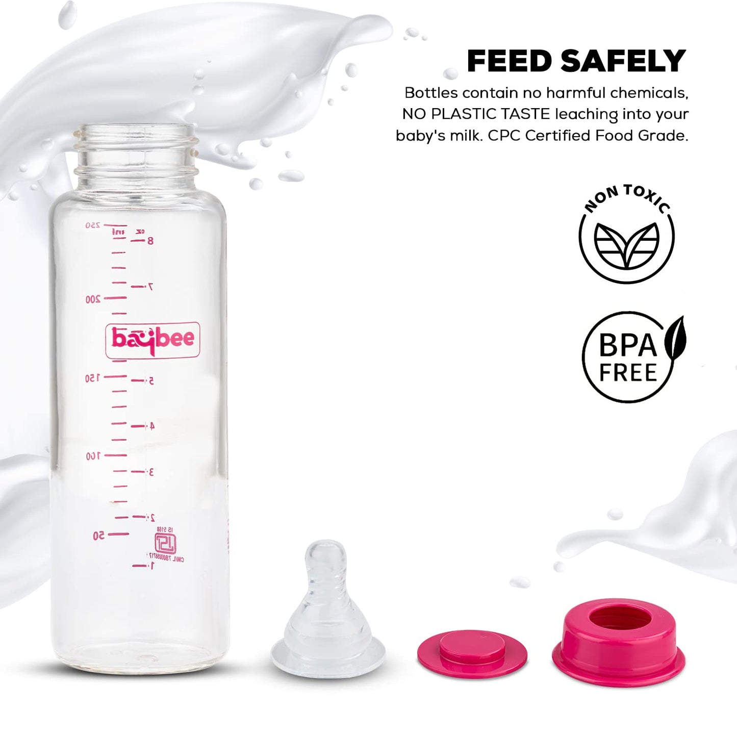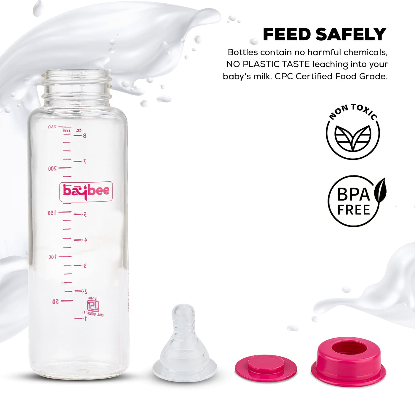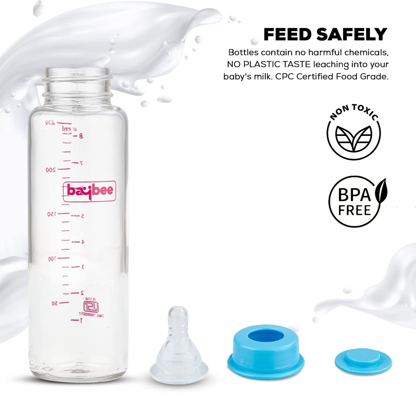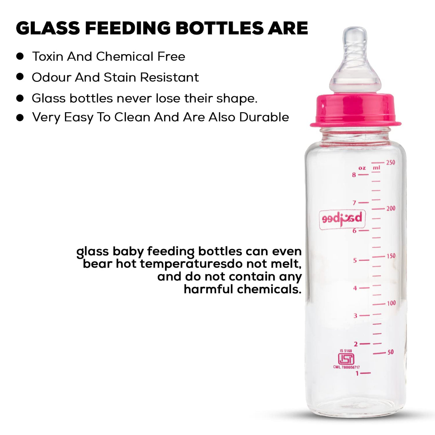 Baybee Slim Essential Glass Baby Feeding Bottle 250ml