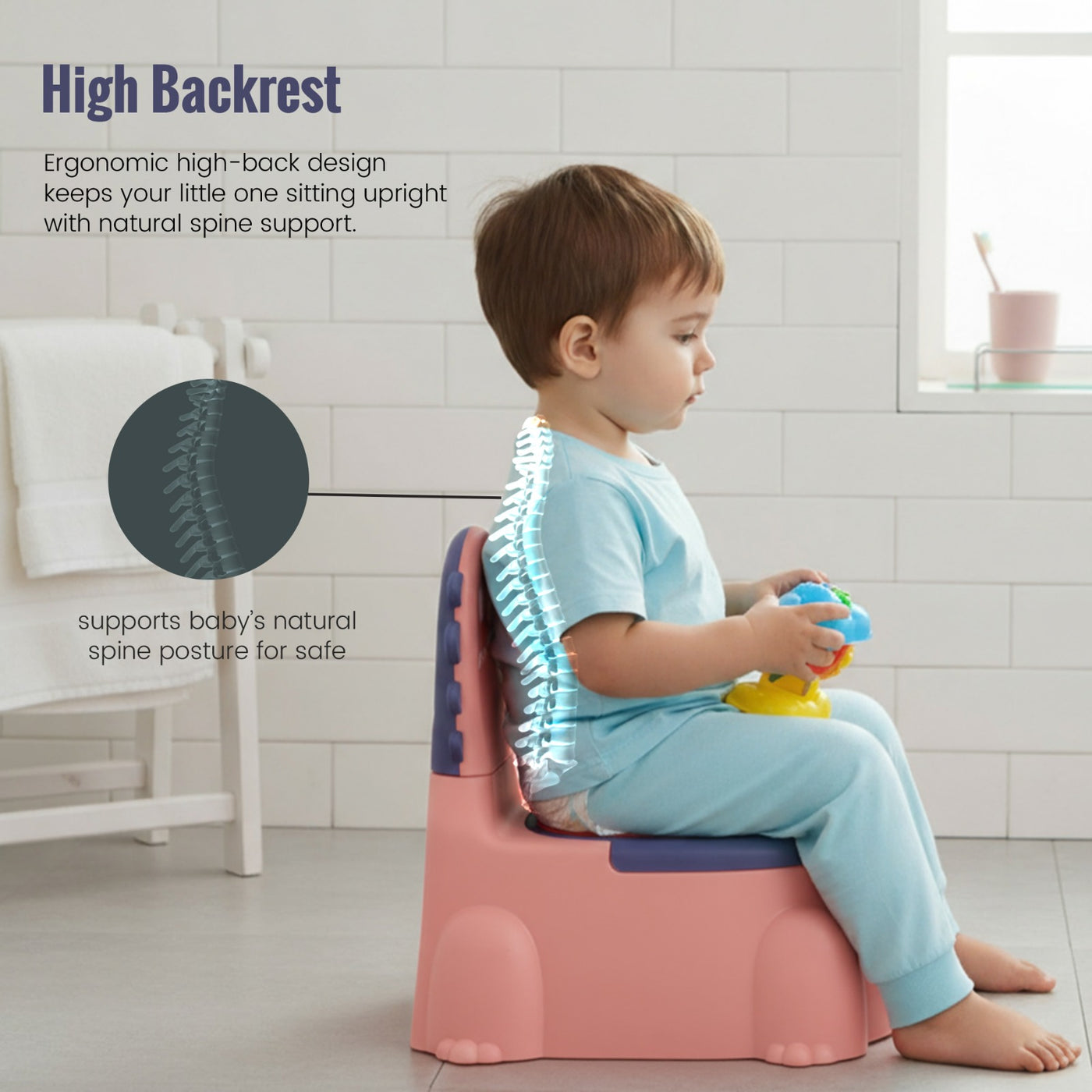 This Baybee Royal Potty Training seat with a ladder fits all standard sizes and elongated toilet seats (Doesn't Fit with Square shapes ). You can also fold it into a compact size for easy storage without taking up too much space. It comes with a cute crown design. The toilet training seat is equipped with smooth and large armrests that fit the curvature of the baby's fingers, making it more comfortable and secure to hold. Soft removable cushion seat, to provide comfort to the baby. The Potty Toilet Seat gear adjustment is more convenient. The height of the two-stage pedal can be adjusted, according to the people's height, it can be adjusted flexibly, and the little feet are not suspended. The Potty Seat is easy to fold and store.