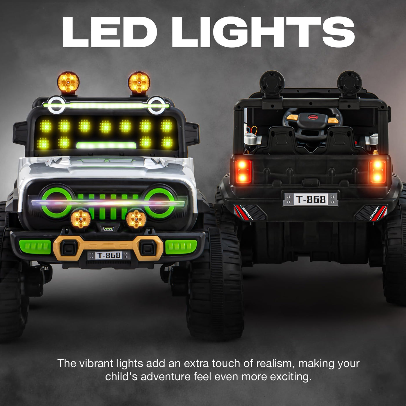 The Baybee Xtreme 4x4 Battery Operated Jeep is built for adventure with its powerful motor and rugged design. Featuring a big battery for extended playtime, this electric jeep for kids is perfect for little explorers aged 2 to 6 years who love an outdoor thrill ride. Packed with exciting features like Bluetooth, USB port, built-in music system, and vibrant LED headlights, this baby car turns every ride into a party on wheels. Whether cruising in the backyard or driveway, kids will enjoy a fully immersive experience while jamming to their favorite tunes. Specially designed for boys and girls aged 2 to 6 years, this ride-on toy car supports safe driving with its ergonomic seat, easy steering, and durable wheels. It’s the perfect size for toddlers and young kids to enjoy solo or with light supervision, building confidence and independence. With features like a steering wheel, foot pedal, and push-button start, this rechargeable electric jeep for kids to drive delivers a realistic driving experience. The smooth acceleration and control system help young drivers navigate comfortably while learning basic motor skills. Crafted with non-toxic materials and a stylish design, this ride-on electric jeep can handle different terrains with ease. Whether it’s a ride through the park or the backyard, the Baybee Xtreme jeep ensures safety, style, and outdoor fun in one rugged package. Powered by a long-lasting rechargeable battery, this big battery jeep for kids offers uninterrupted fun. The convenient charging system allows for quick recharges, giving kids more time to enjoy and parents less to worry about, making it a smart, family-friendly toy investment.